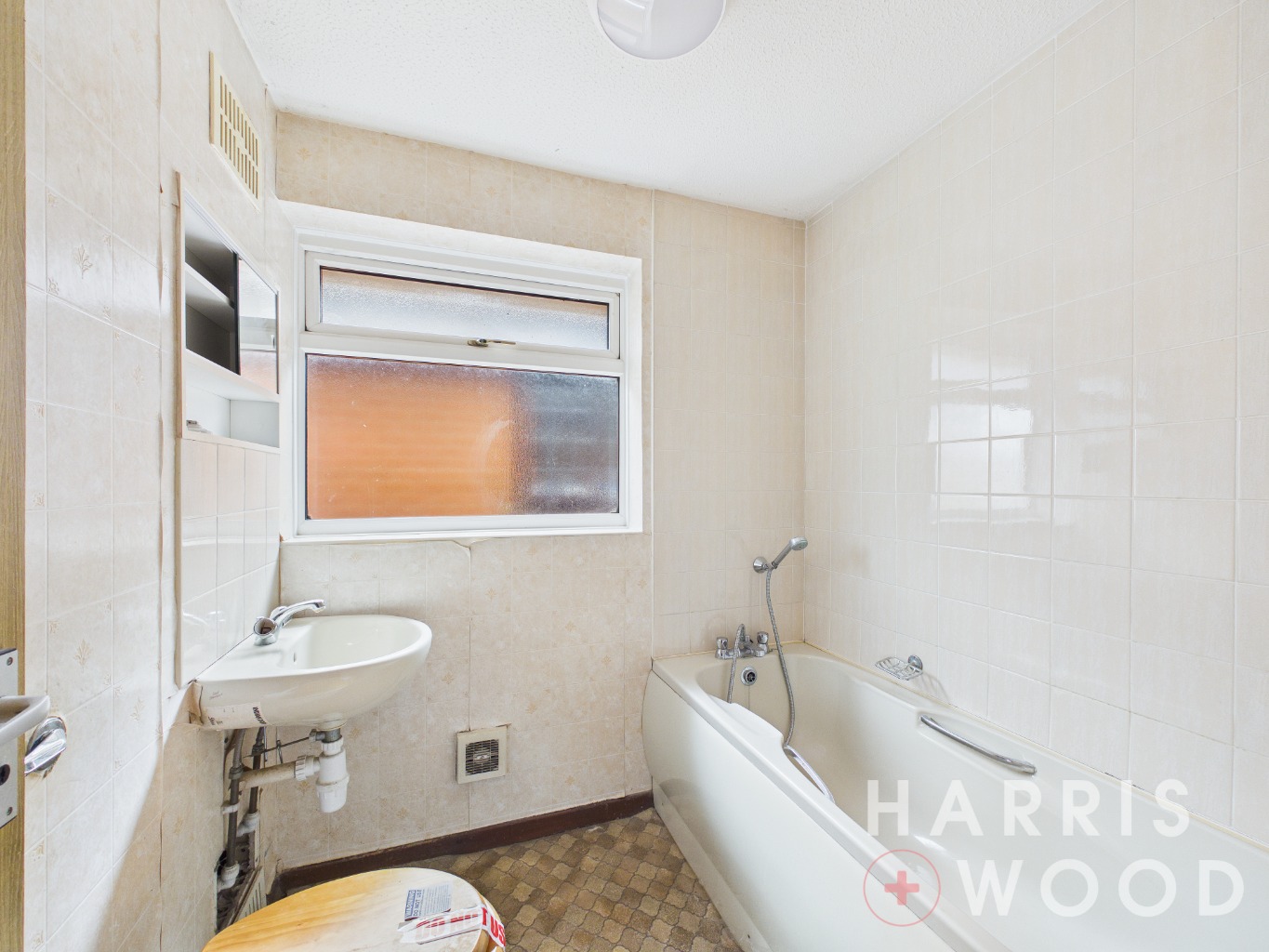Double glazed window, low level WC, wash hand basin, bath, partly tiled walls
