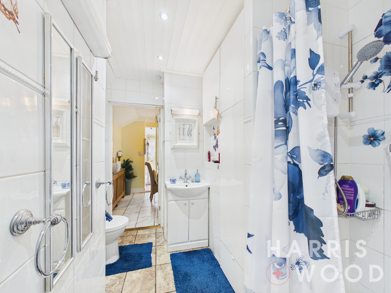 Double glazed window to side, low level WC, wash hand basin, shower cubicle