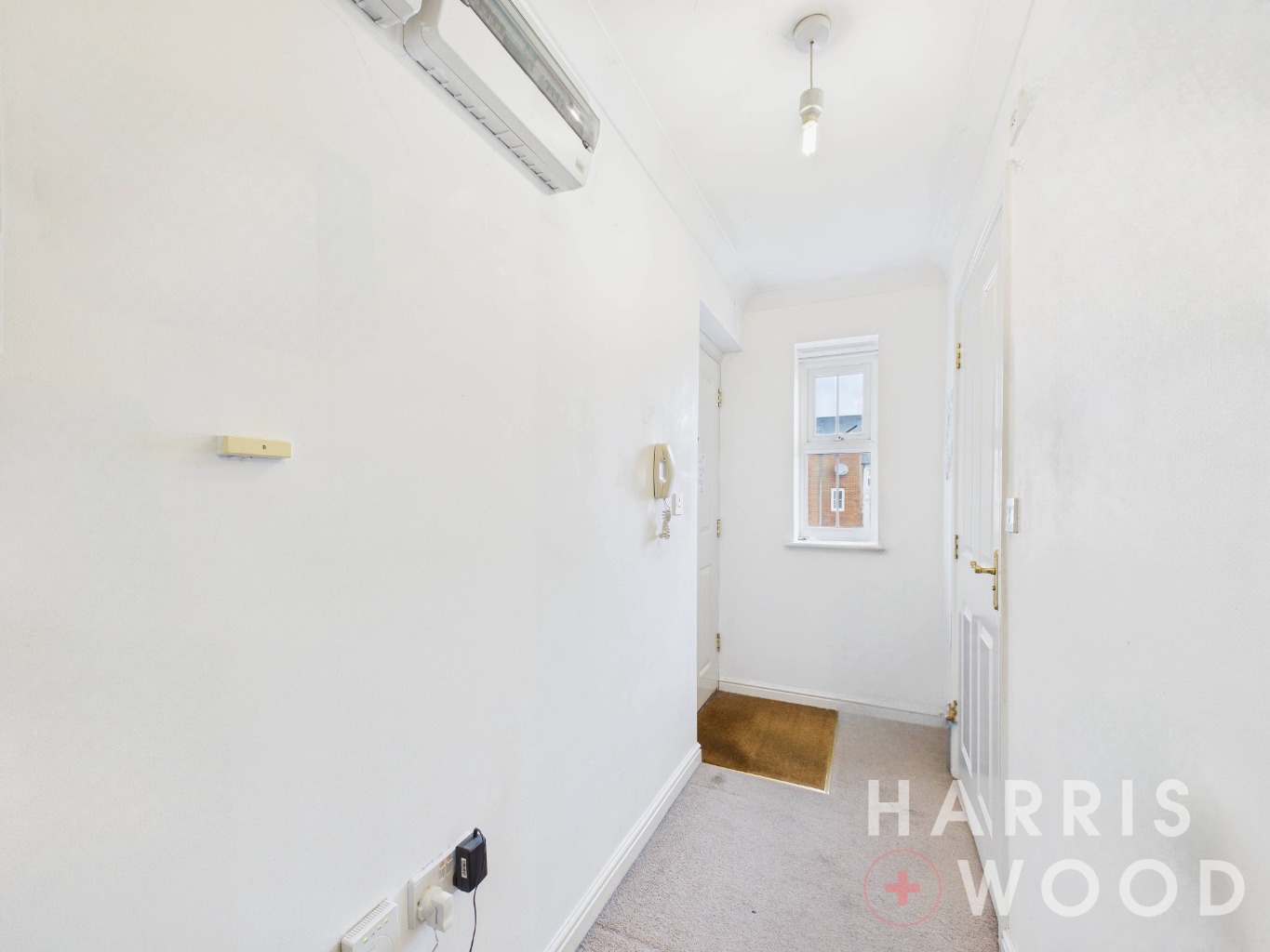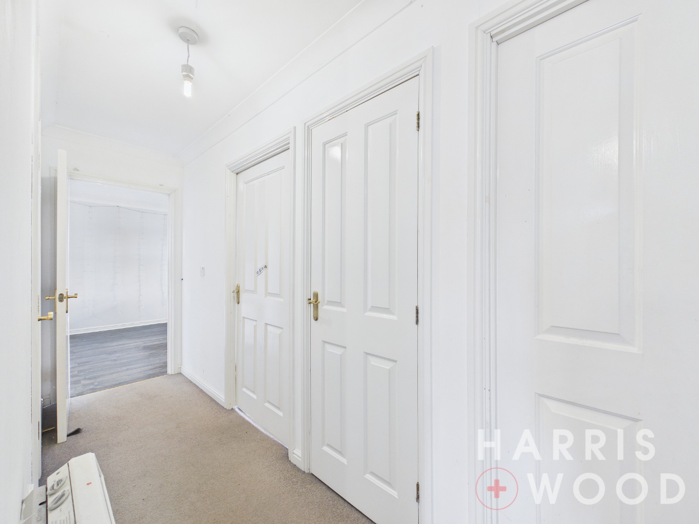 Entrance door, storage cupboard, airing cupboard, heater, doors leading off