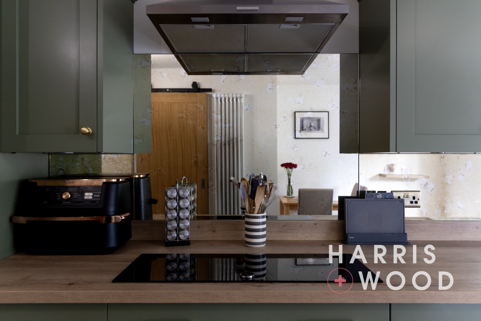 Radiator, window to rear, matching base and wall level units with work surface over, inset sink and drainer, integrated oven, hob, extractor fan, fridge/freezer and dishwasher, door to rear leading to rear garden