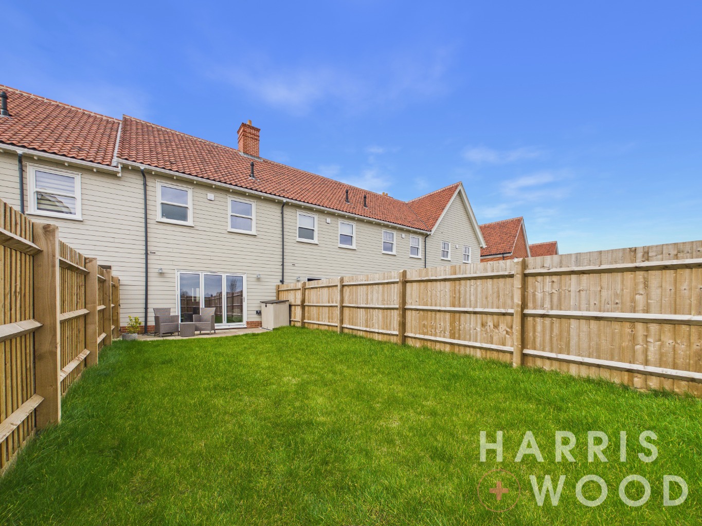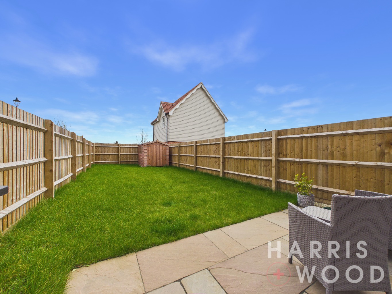 Fully enclosed and private, well maintained, mainly laid to lawn, patio seating area