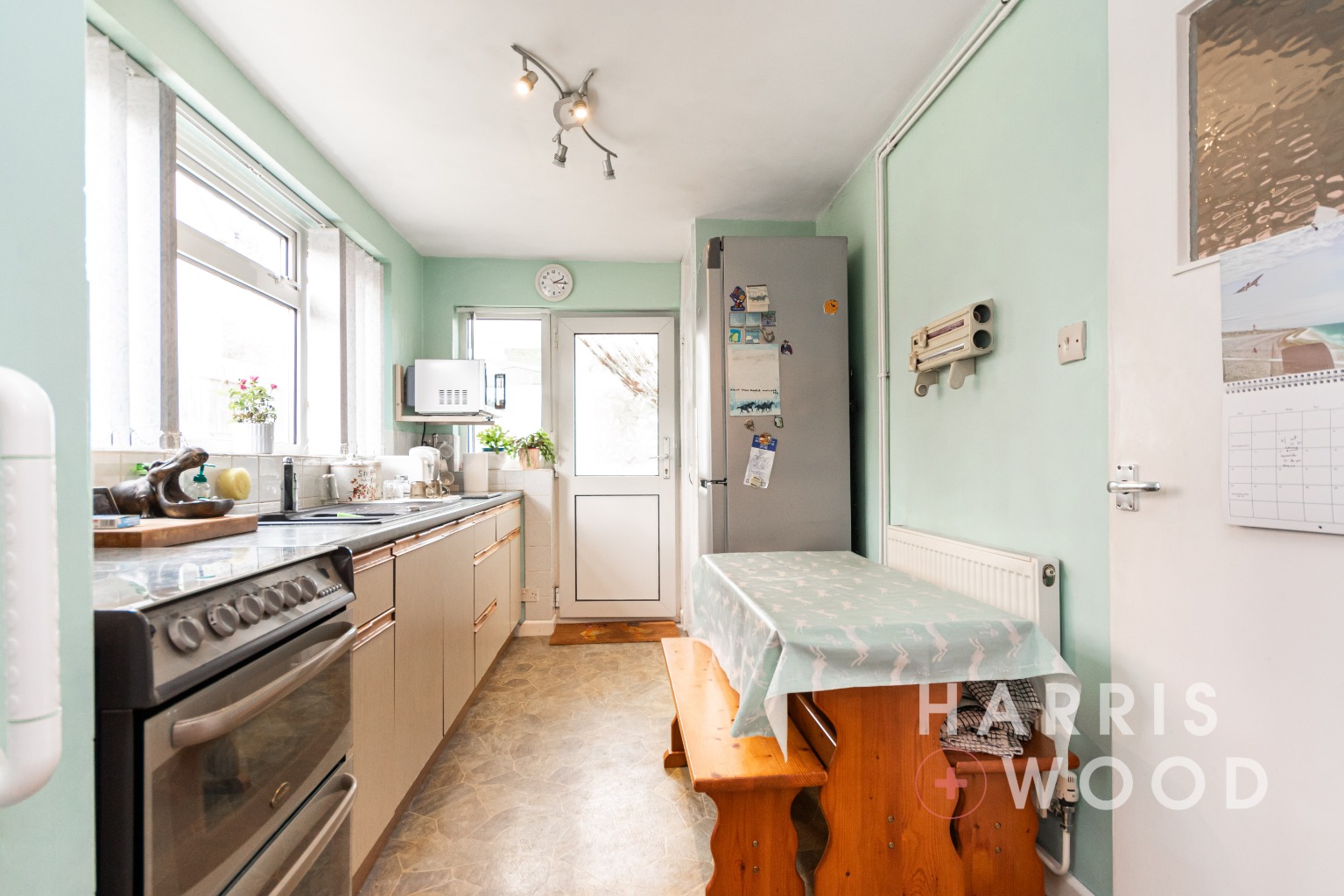 Double glazed window to side, double glazed door to rear, wall and base level units, sink and drainer with mixer tap over, oven and hob, extractor fan, worktops, space for appliances, radiator
