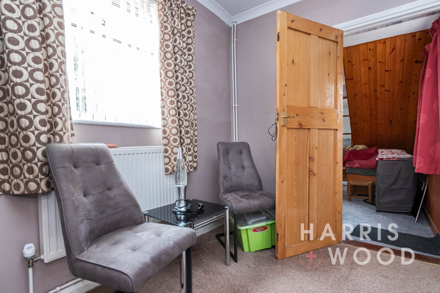 Double glazed window, storage cupboard, doors leading off