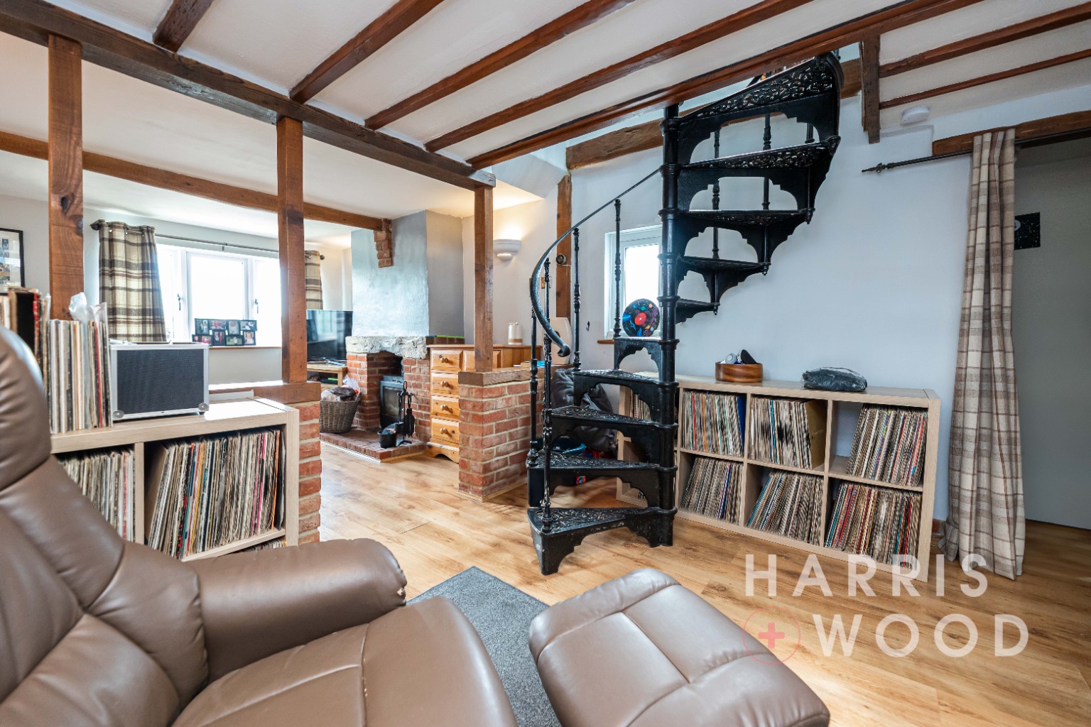 Upon entering, you are welcomed into a spacious open plan lounge/diner, ideal for both relaxing and entertaining. A striking spiral staircase adds a touch of charm and leads to the first-floor accommodation. The ground floor also benefits from a bright and versatile garden room, a cloakroom, and a well-appointed family bathroom.