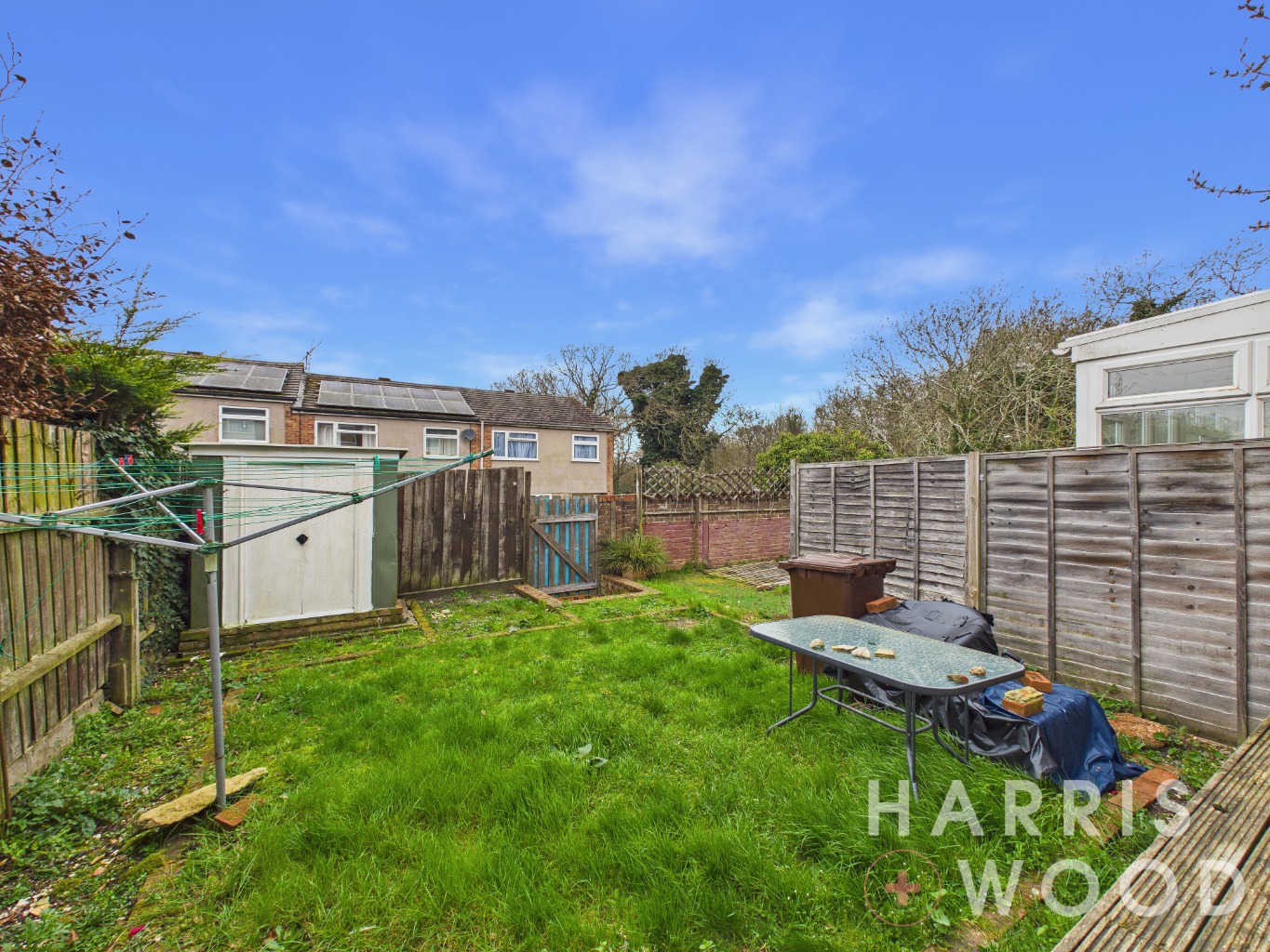 Fully enclosed and private, laid to lawn, shed, gate to rear