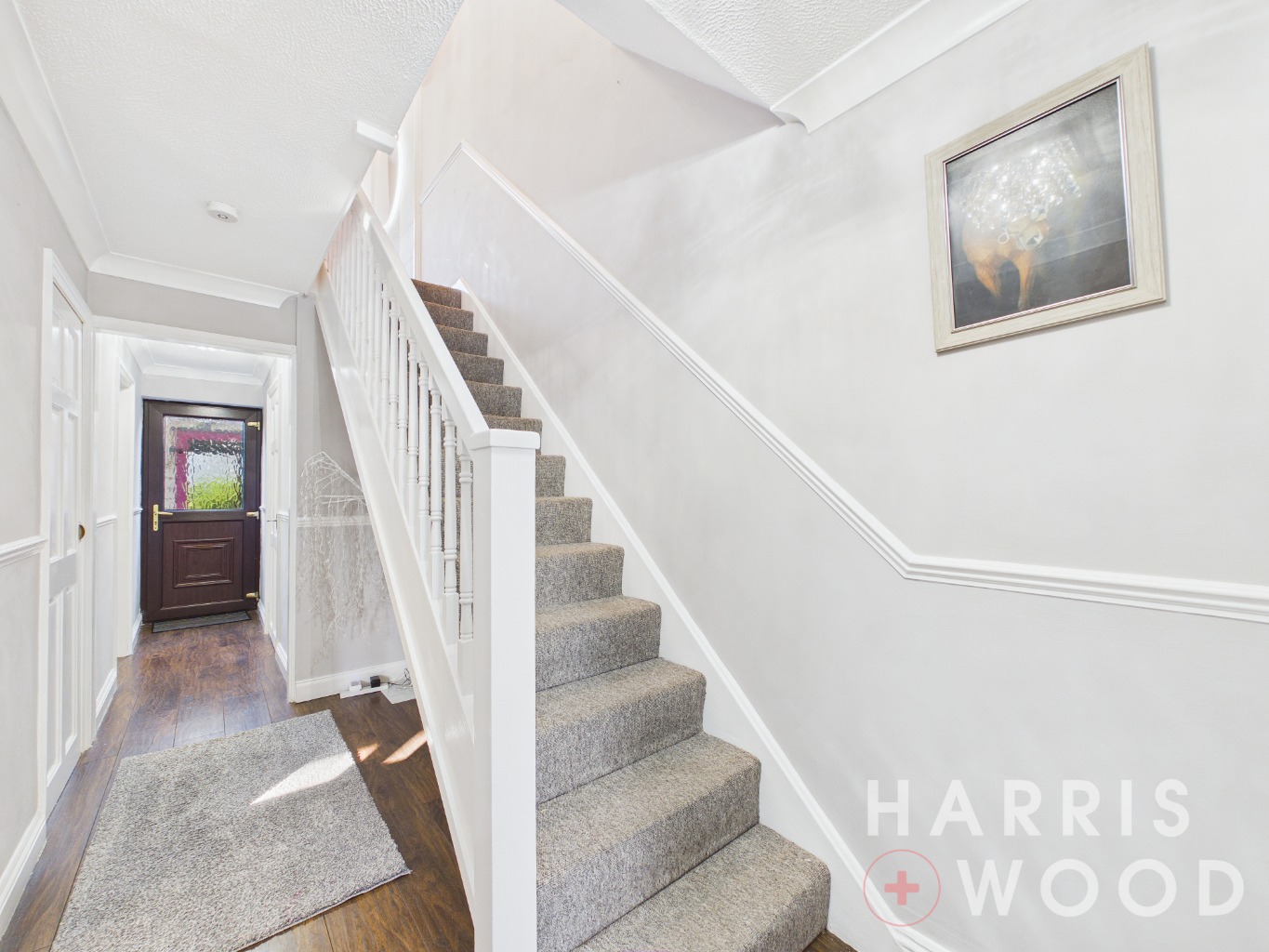 Entrance door, stairs rising to the first floor landing, doors leading off