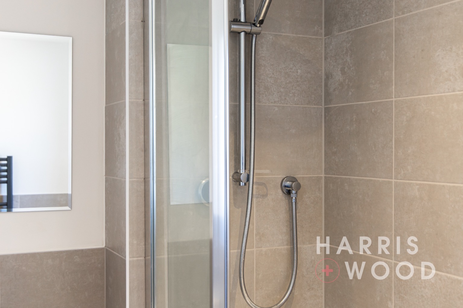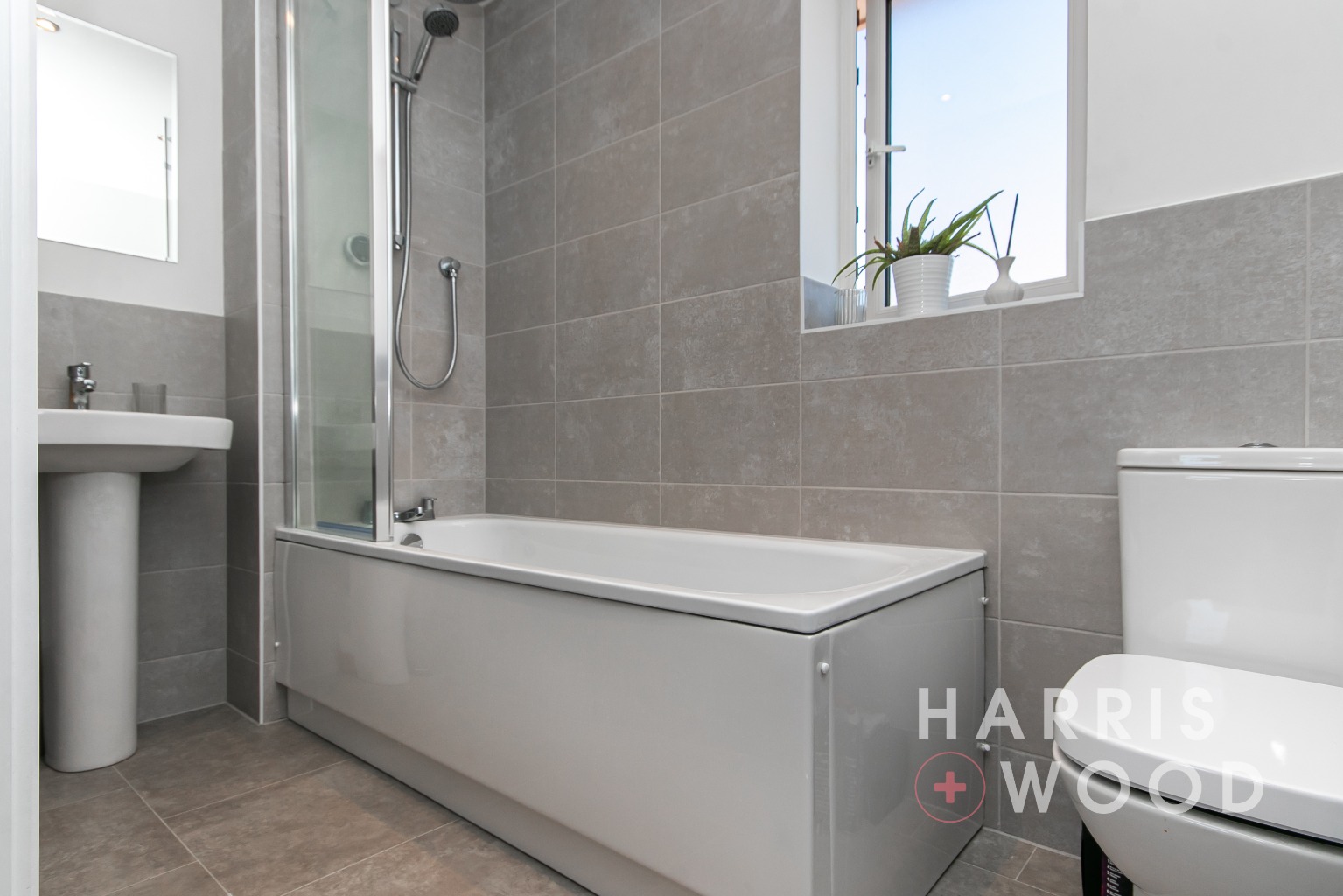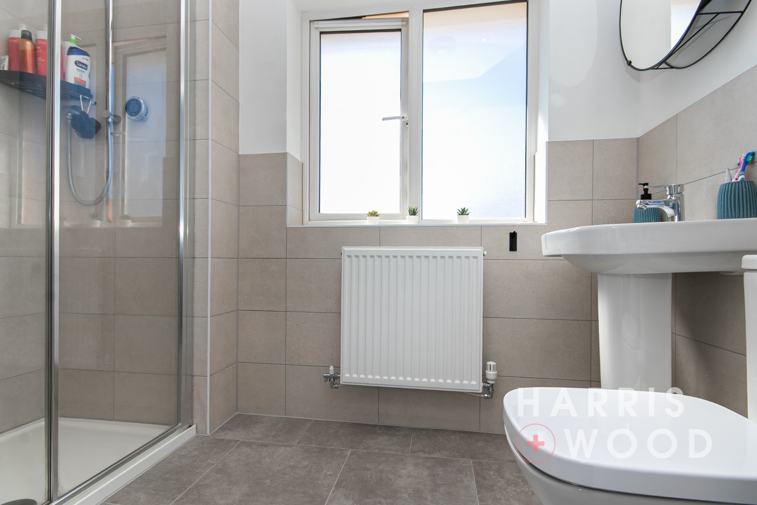 Double glazed window, low level WC, wash hand basin, shower cubicle, radiator