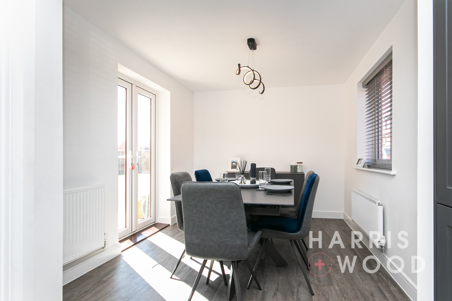 Double glazed window and French doors, radiator, open plan to: