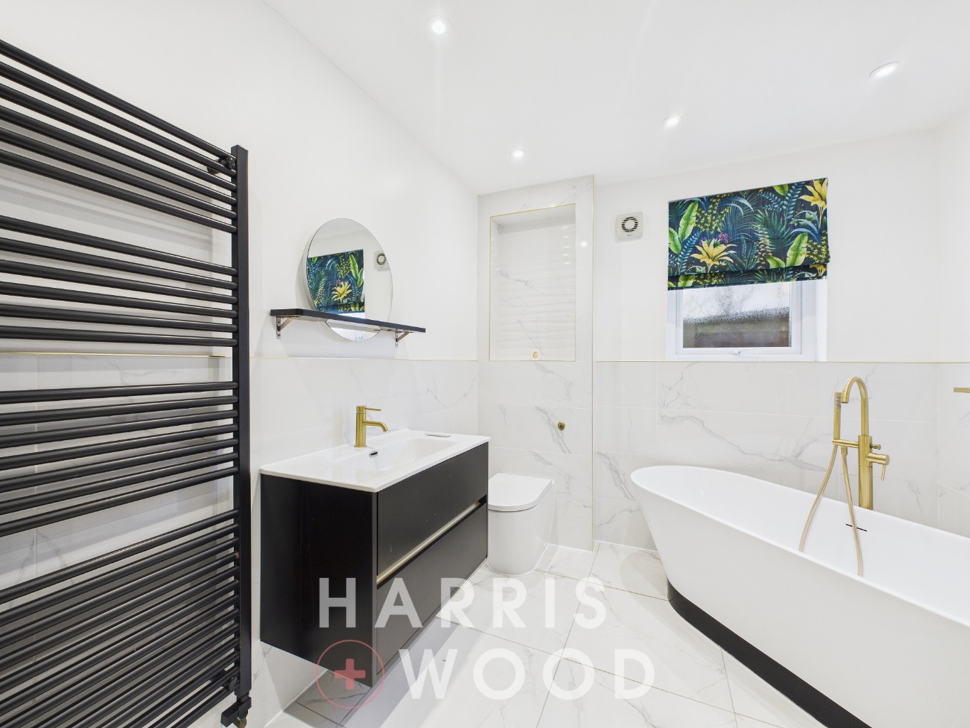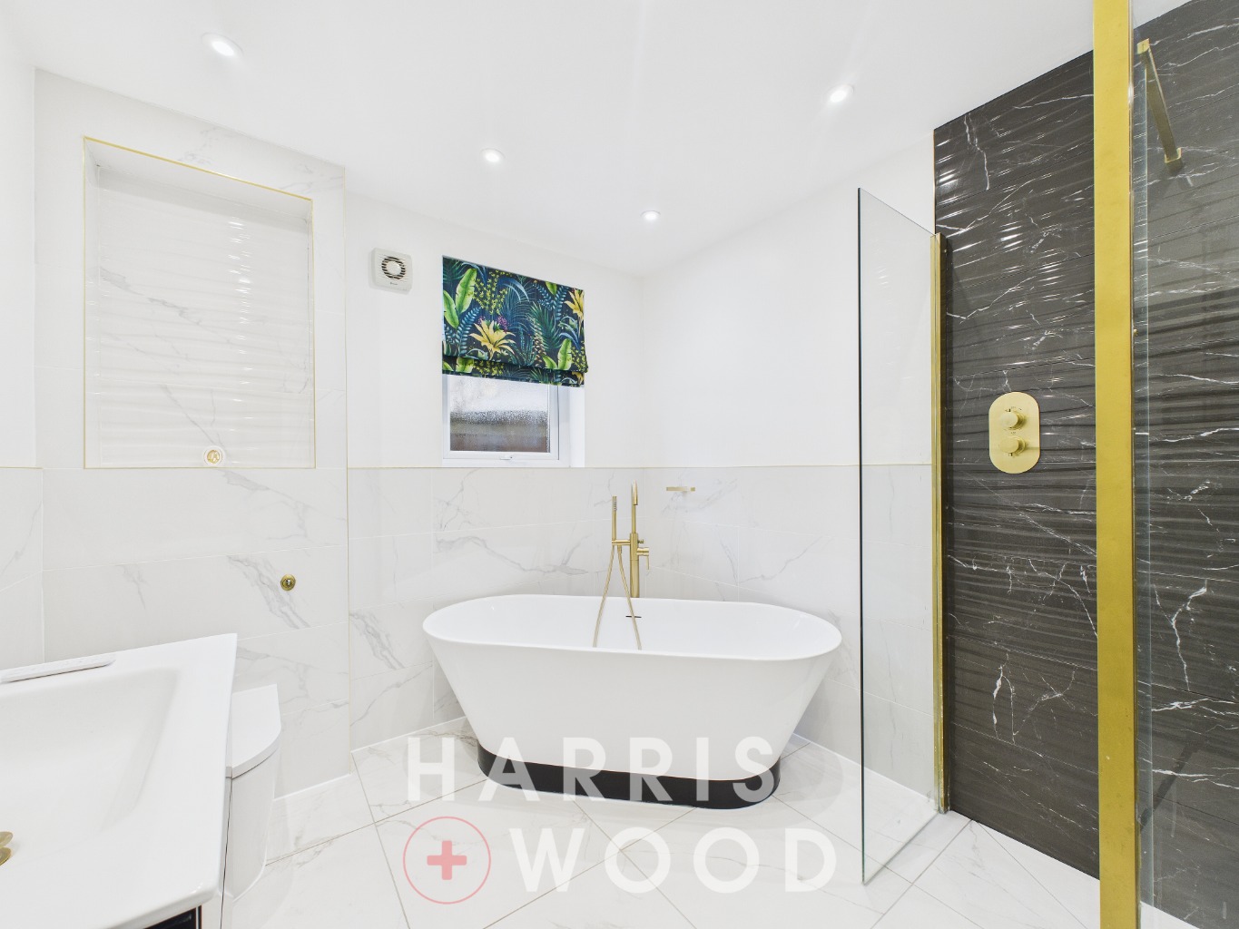 Double glazed window, low level WC, wash hand basin, bath with shower over, radiator