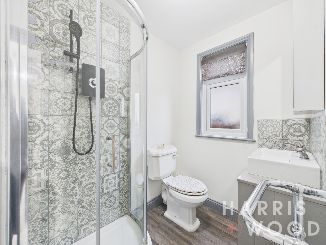 Double glazed window, low level WC, wash hand basin, shower cubicle, radiator