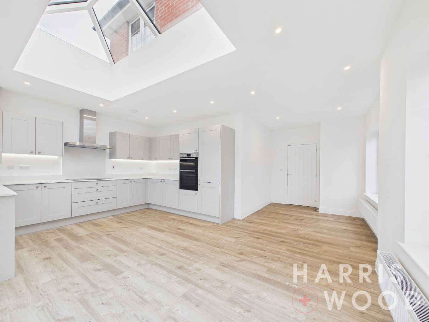 The ground floor features a spacious kitchen/living area, perfect for daily life and entertaining, complete with modern appliances and sleek cabinetry. A convenient cloakroom adds to the practicality. One of the standout features is the generous reception space, with three distinct rooms offering flexibility for a formal dining room, lounge, or home office. A stunning roof lantern enhances natural light, creating an airy atmosphere.