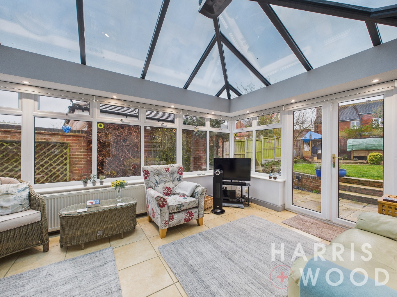 Double glazed windows, patio doors leading out onto the rear garden, radiator (There is also a blue tinted glass conservatory ceiling which helps reflect summer heat)