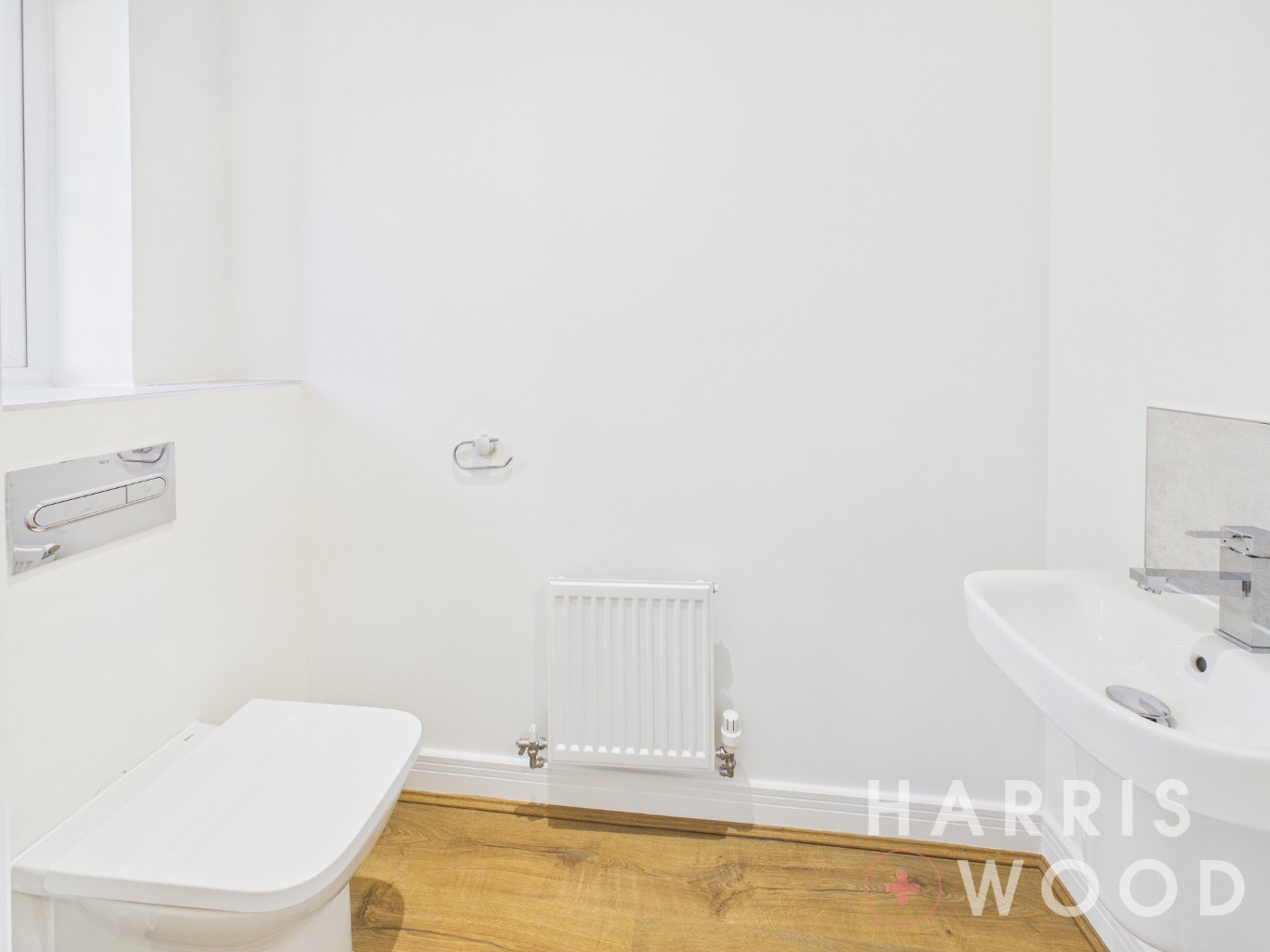 Double glazed window, low level WC, wash hand basin, radiator