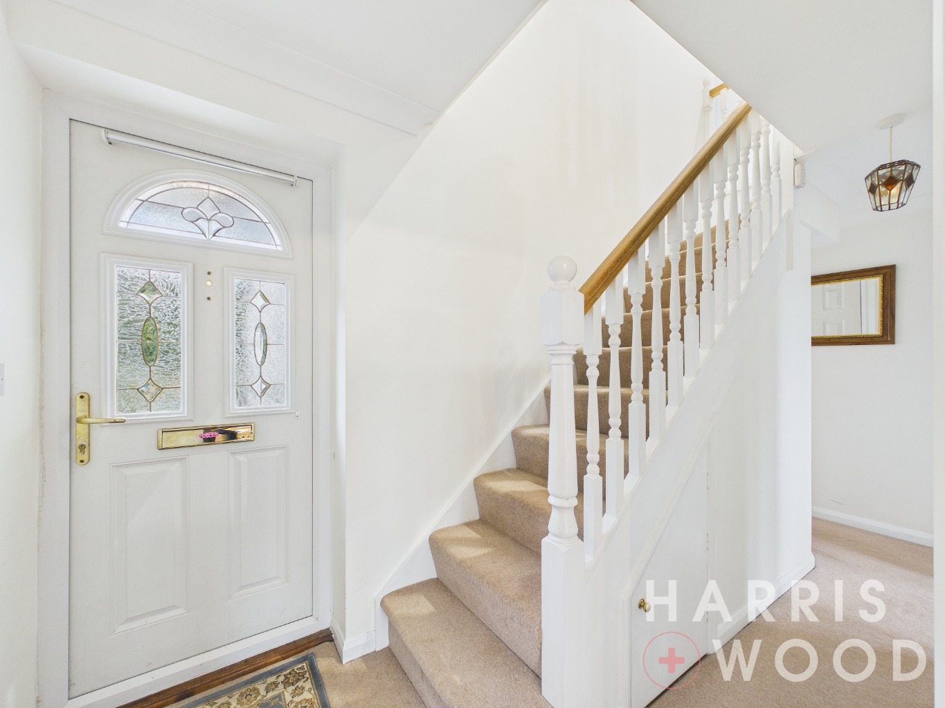 Entrance door, stairs rising to the first floor landing, doors leading off