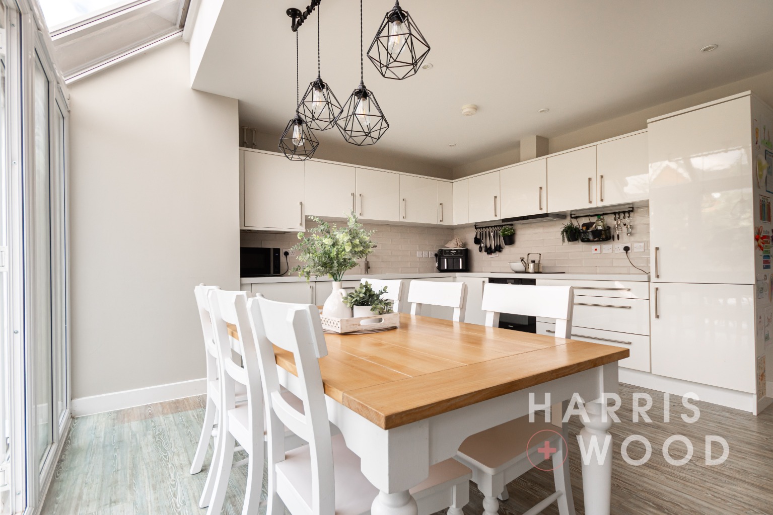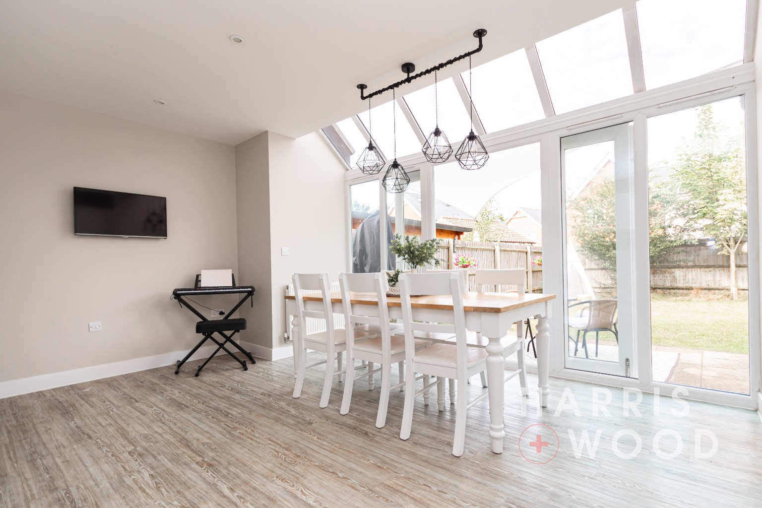 Upon entering the property, you are welcomed by a spacious entrance hallway which leads to a modern cloakroom and a bright, well-proportioned lounge featuring a charming bay window. To the rear, the impressive fitted kitchen/diner offers a contemporary and social space, with full-width glazing and direct access to the rear garden—perfect for entertaining and family living. The property also benefits from planning permission for a rear extension (Colchester City Council Ref: 240085), offering further potential to enhance the ground floor living area.