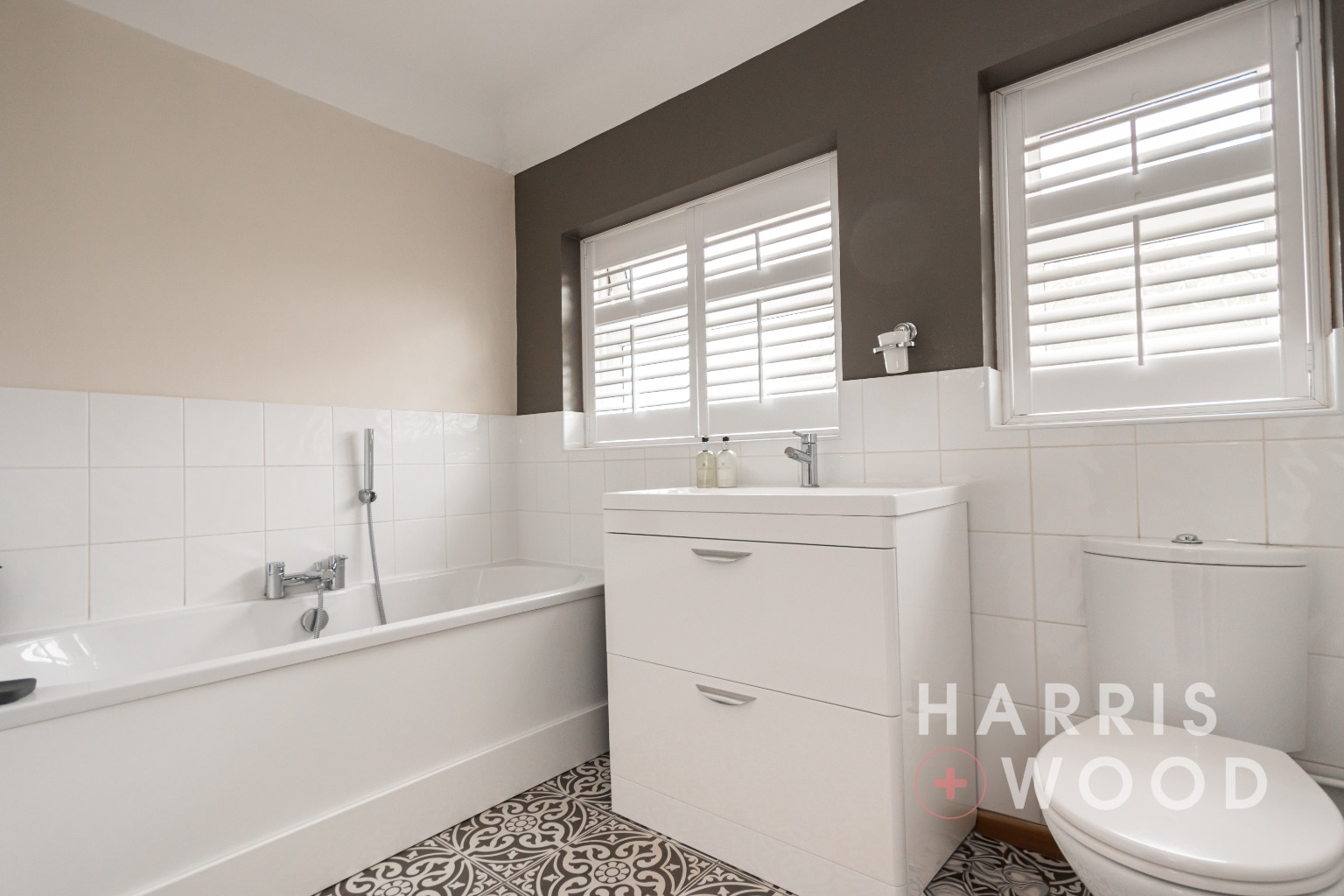 Double glazed window to rear, low level WC, wash hand basin, bath with shower over, radiator