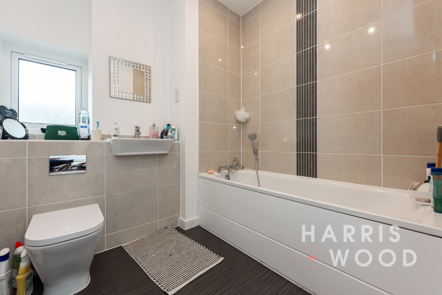 Double glazed window, low level WC, wash hand basin, bath with shower over, radiator