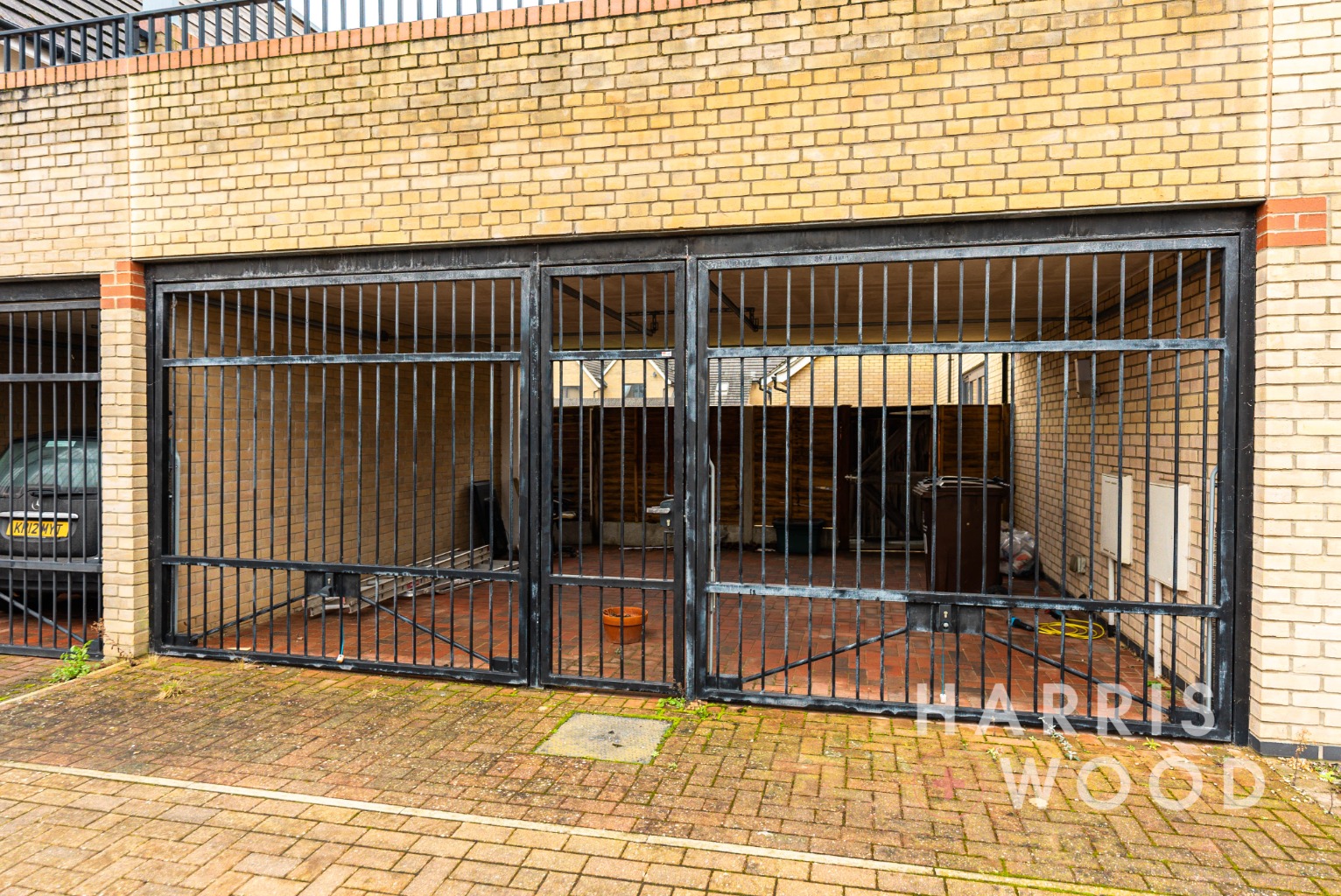 Accessed via iron gates with space for two vehicles