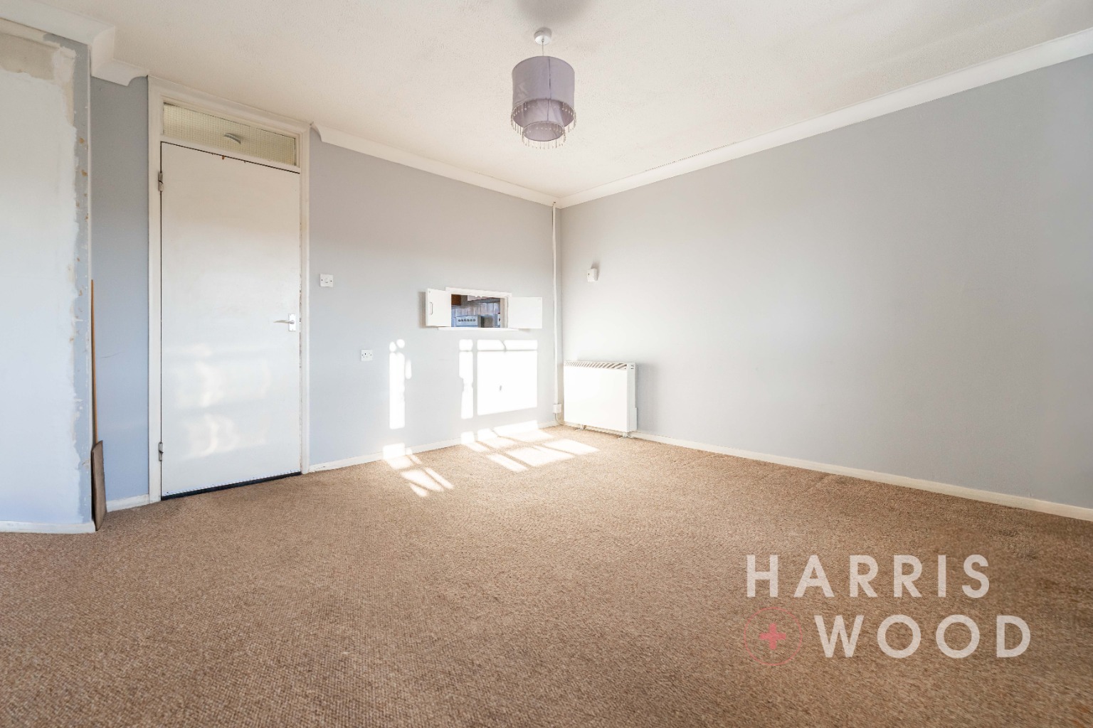 Entrance door, storage cupboards, doors leading off