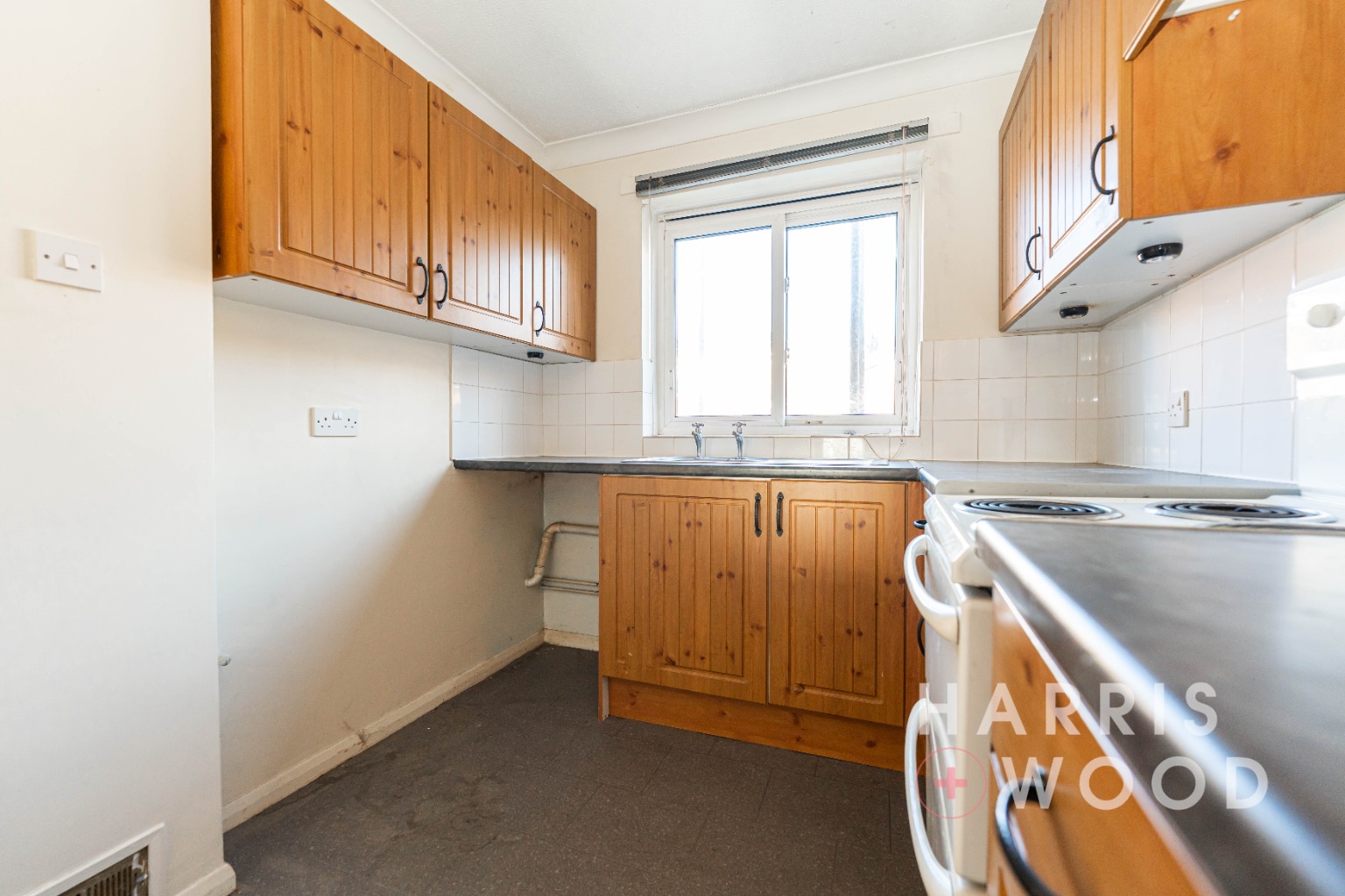 Double glazed window, wall and base level units, sink and drainer with mixer tap over, oven and hob, extractor fan, worktops, space for appliances