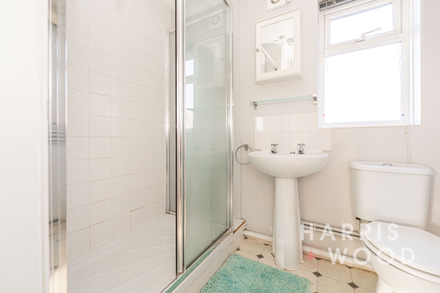 Double glazed window, low level WC, wash hand basin, shower cubicle, storage cupboard