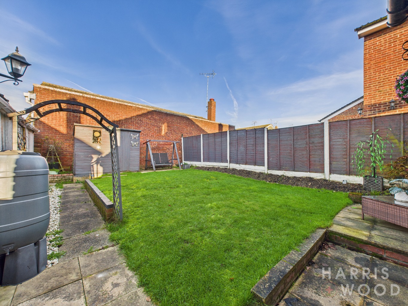 Fully enclosed and private, laid to lawn, patio