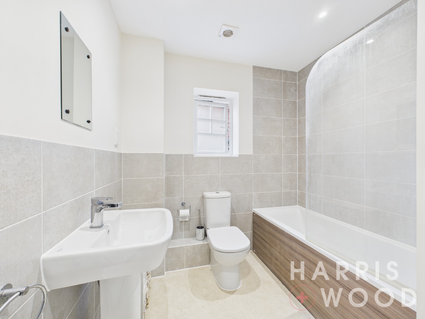 Double glazed window, low level WC, wash hand basin, bath with shower over, radiator