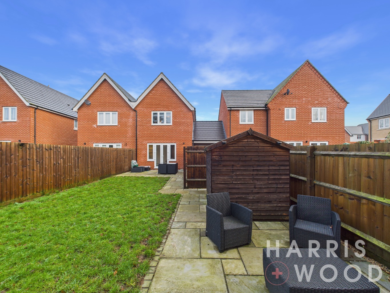 Fully enclosed and private, laid to lawn, patio seating area, shed, South Facing