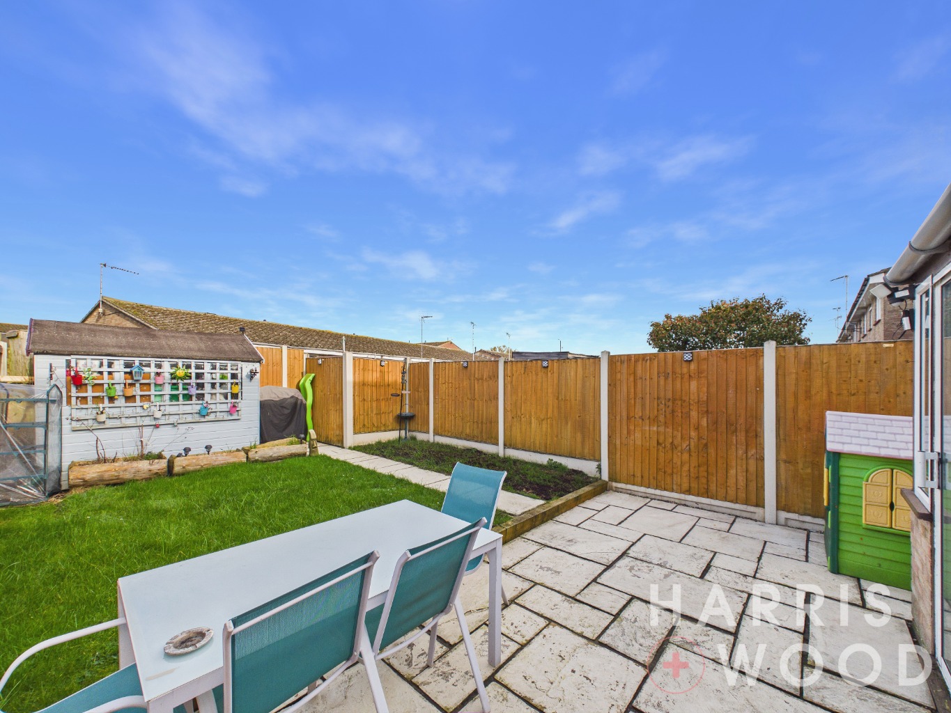 Fully enclosed and private, laid to lawn, patio area, shed to remain, gate