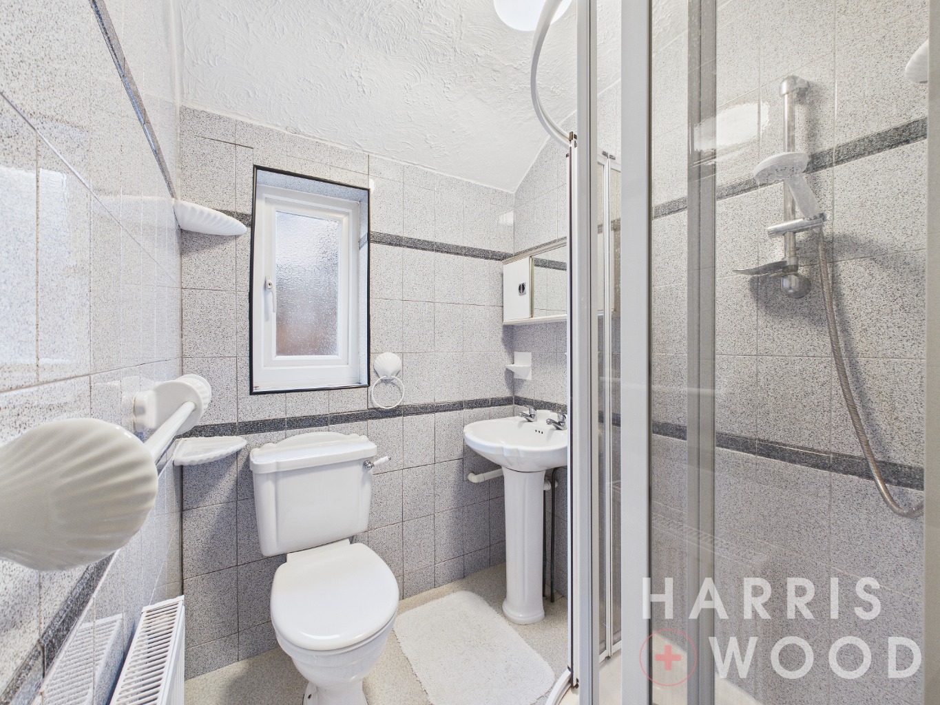 Double glazed window, low level WC, wash hand basin, bath with shower over, radiator