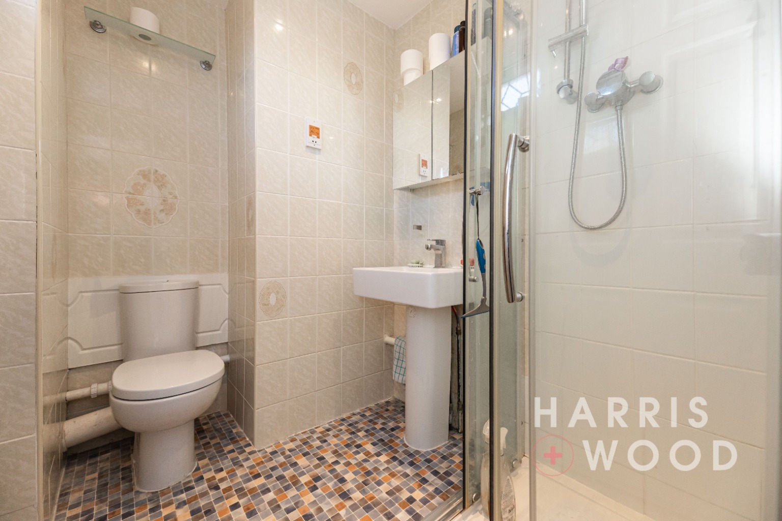 Double glazed window to side, low level WC, wash hand basin, shower cubicle