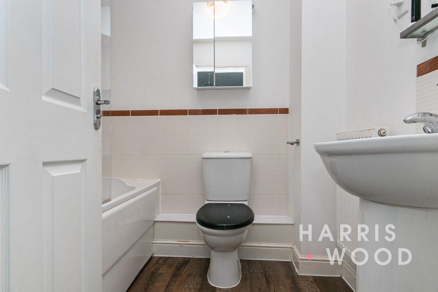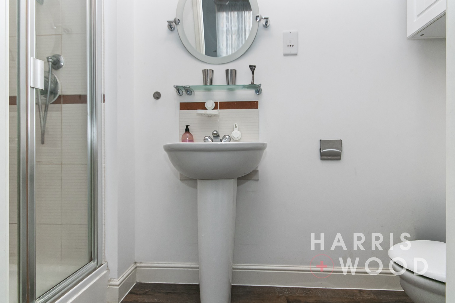 Double glazed window to front, low level WC, pedestal wash hand basin, fully tiled shower cubicle, radiator