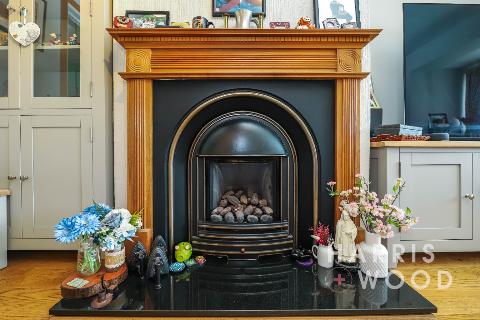 Double glazed window, feature fireplace, radiator