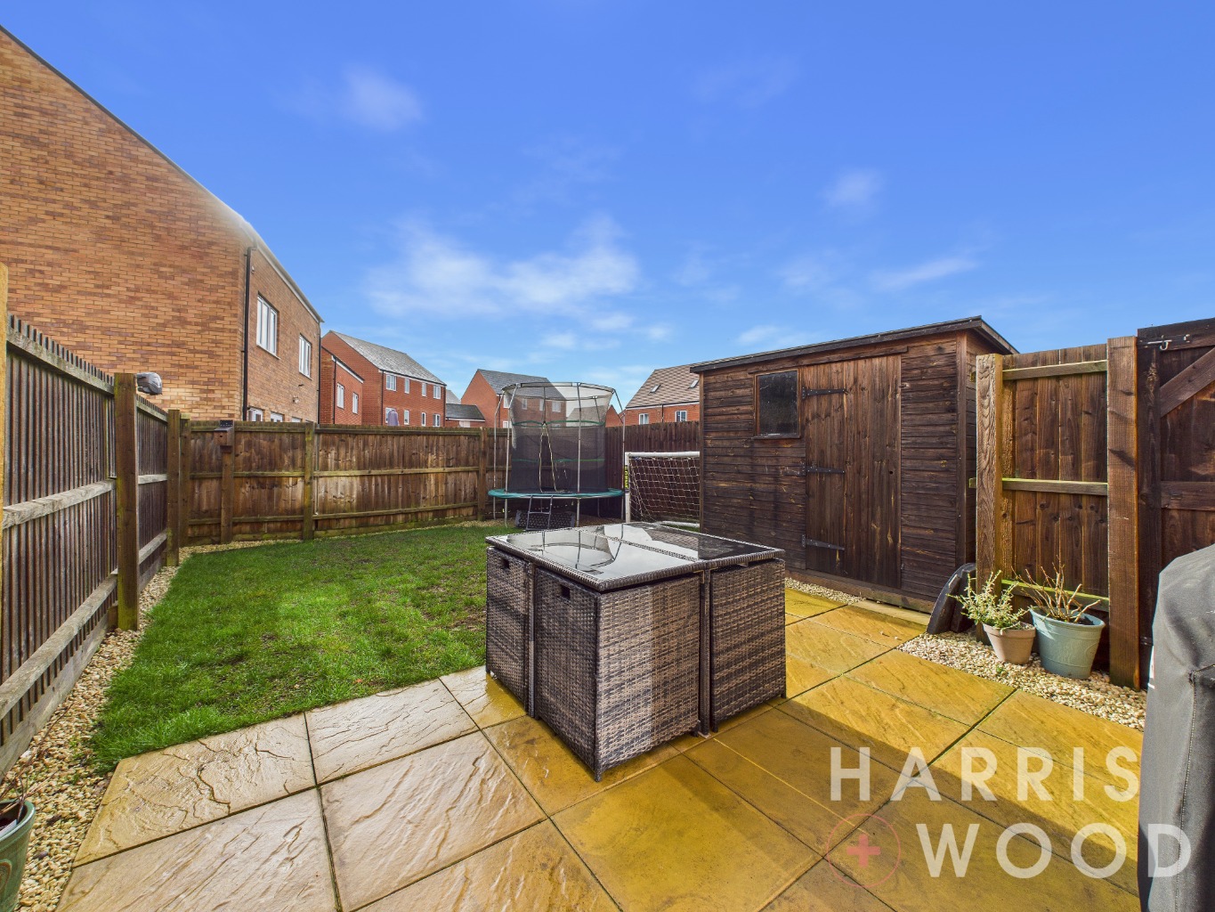 Fully enclosed and private, laid to lawn, patio area, shed, gate to side