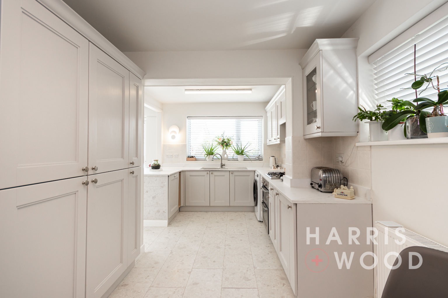 The kitchen is thoughtfully designed, with ample worktop space and cabinetry, and flows effortlessly into the dining area or through to the garden — perfect for indoor-outdoor living during the summer months. The ground floor also benefits from a convenient cloakroom and additional storage options.