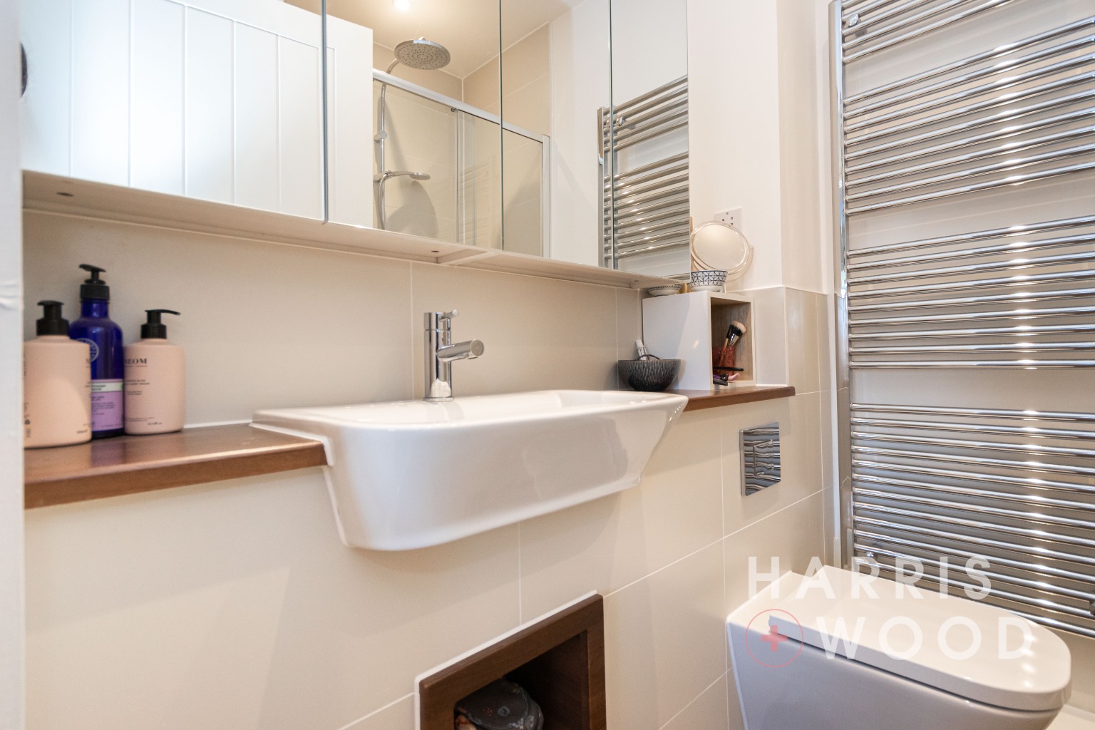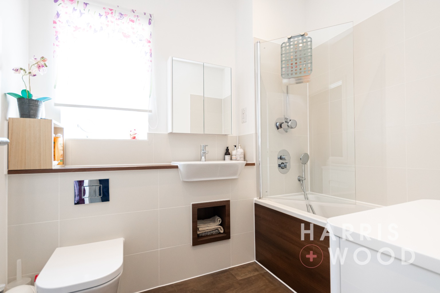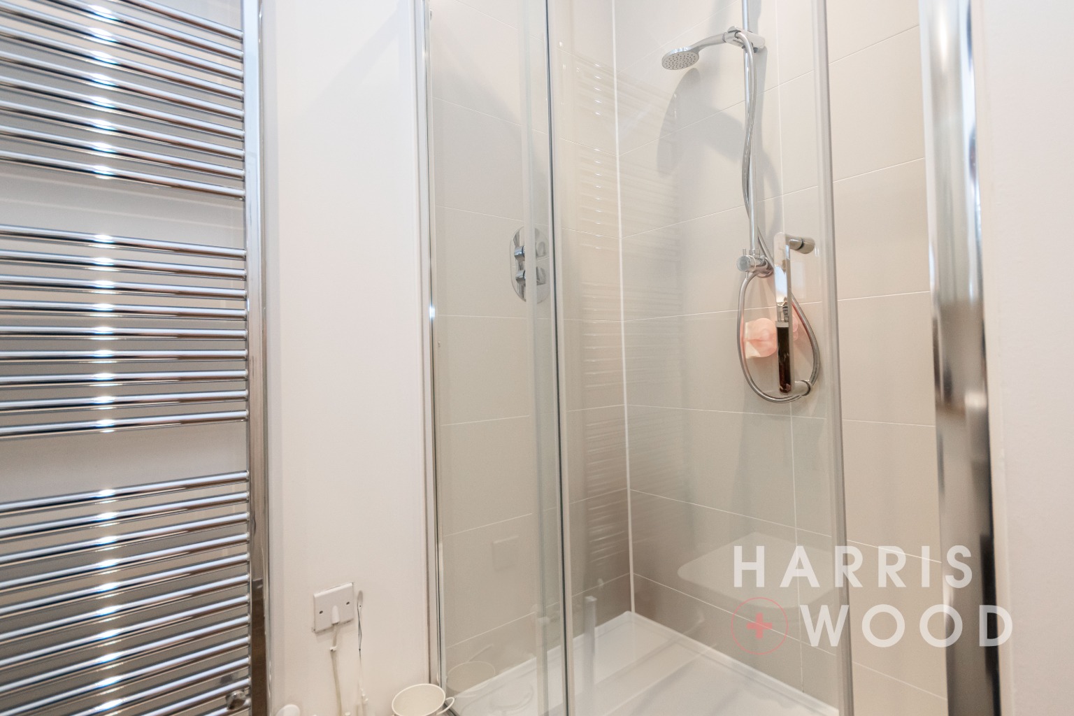 The apartment is accessed via a spacious entrance hallway, which includes a large storage cupboard, ideal for coats, shoes, or additional household items. Both bedrooms are generous doubles, with the master bedroom further enhanced by fitted wardrobes and a stylish en suite shower room. An additional contemporary family bathroom serves the second bedroom and guests.