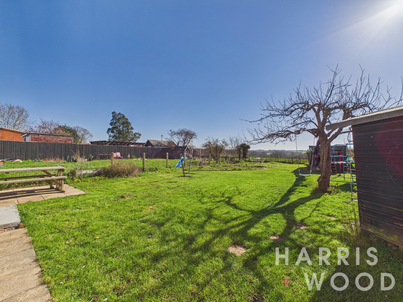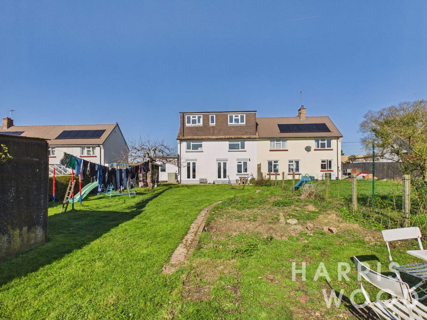Fully enclosed and private, laid to lawn, shed to remain, gate to rear, outside tap, backing onto fields