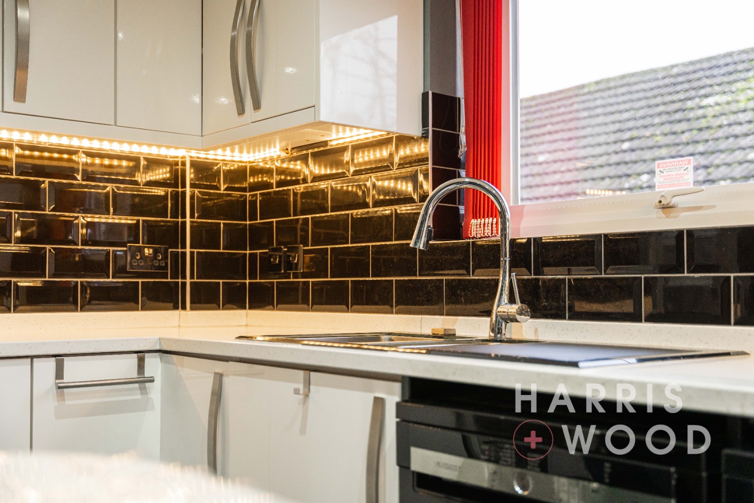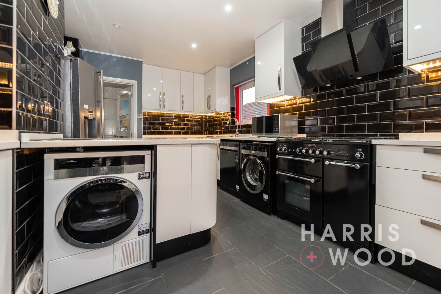 Double glazed window to side, door to rear, wall and base level units, sink and drainer with mixer tap over, oven and hob, extractor fan, worktops, space for appliances