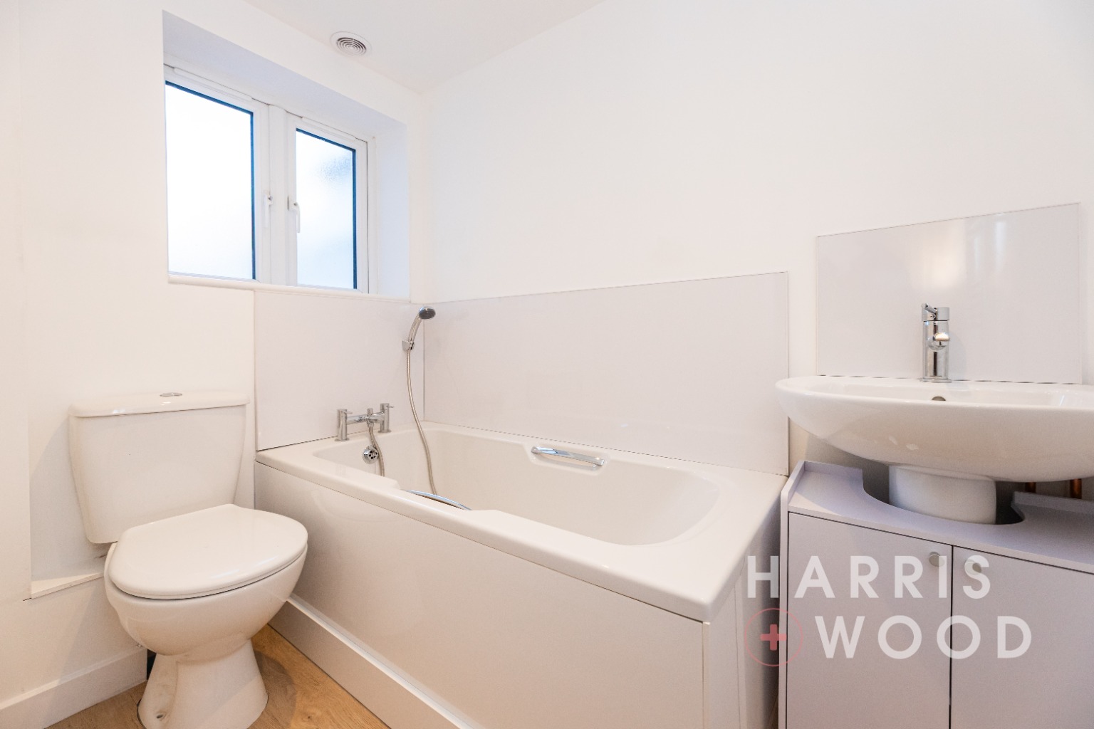 Double glazed window, low level WC, wash hand basin, bath with shower over