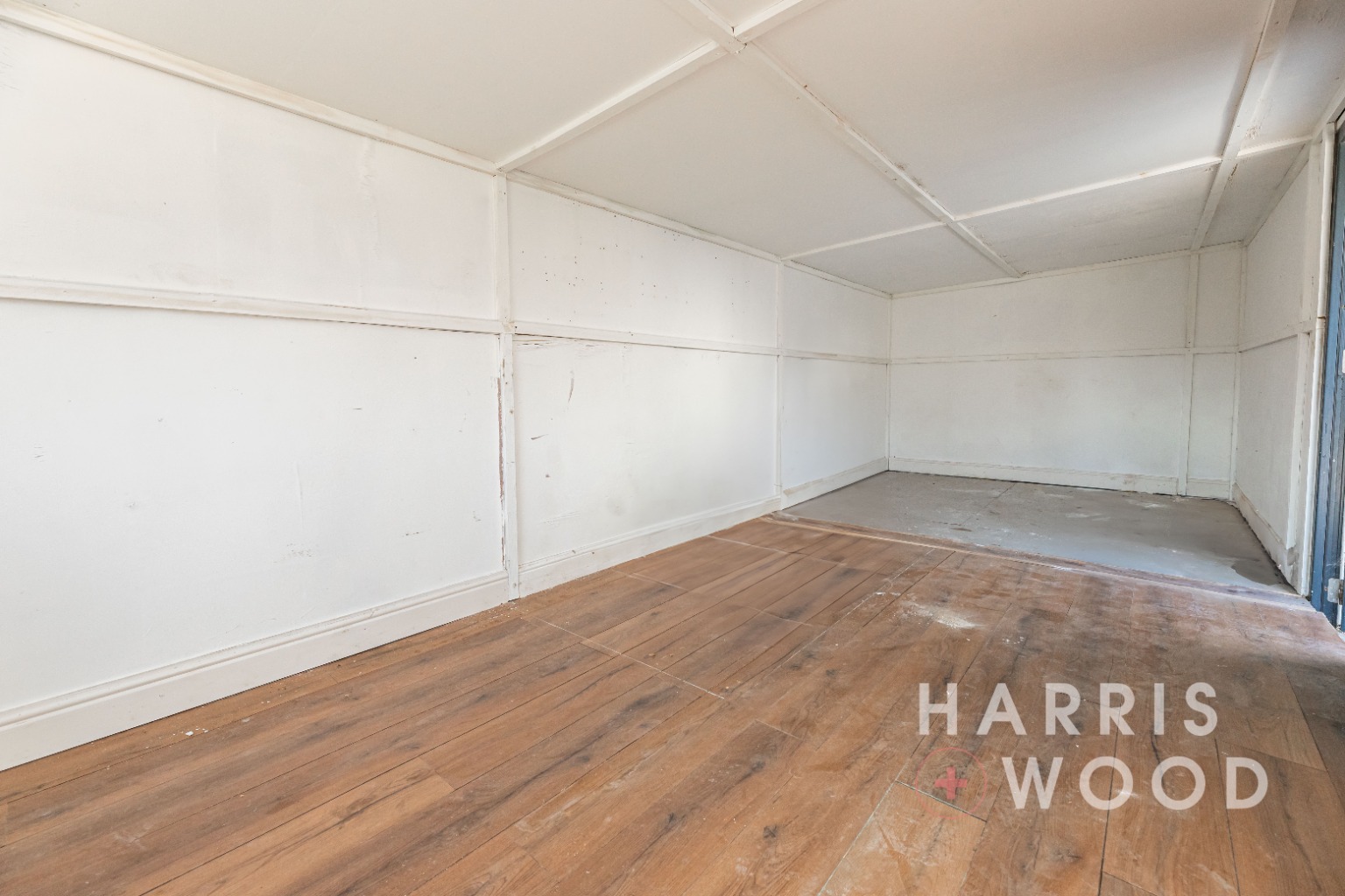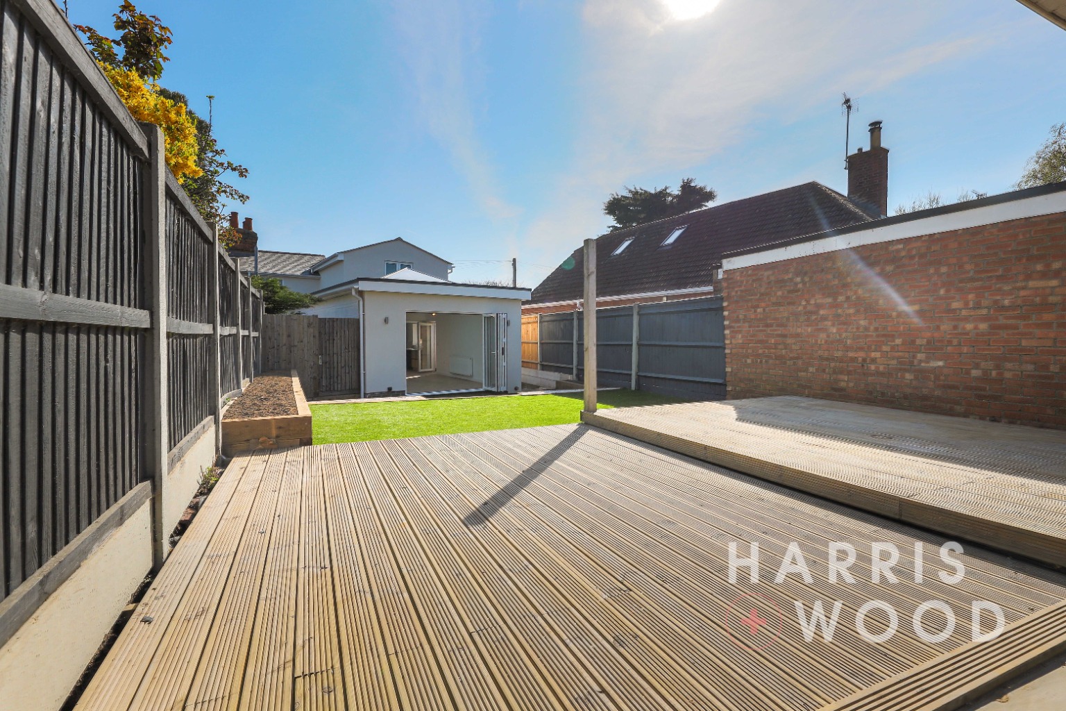 Fully enclosed and private, mainly laid to Artificial lawn, flower beds, decked patio area, two outbuildings