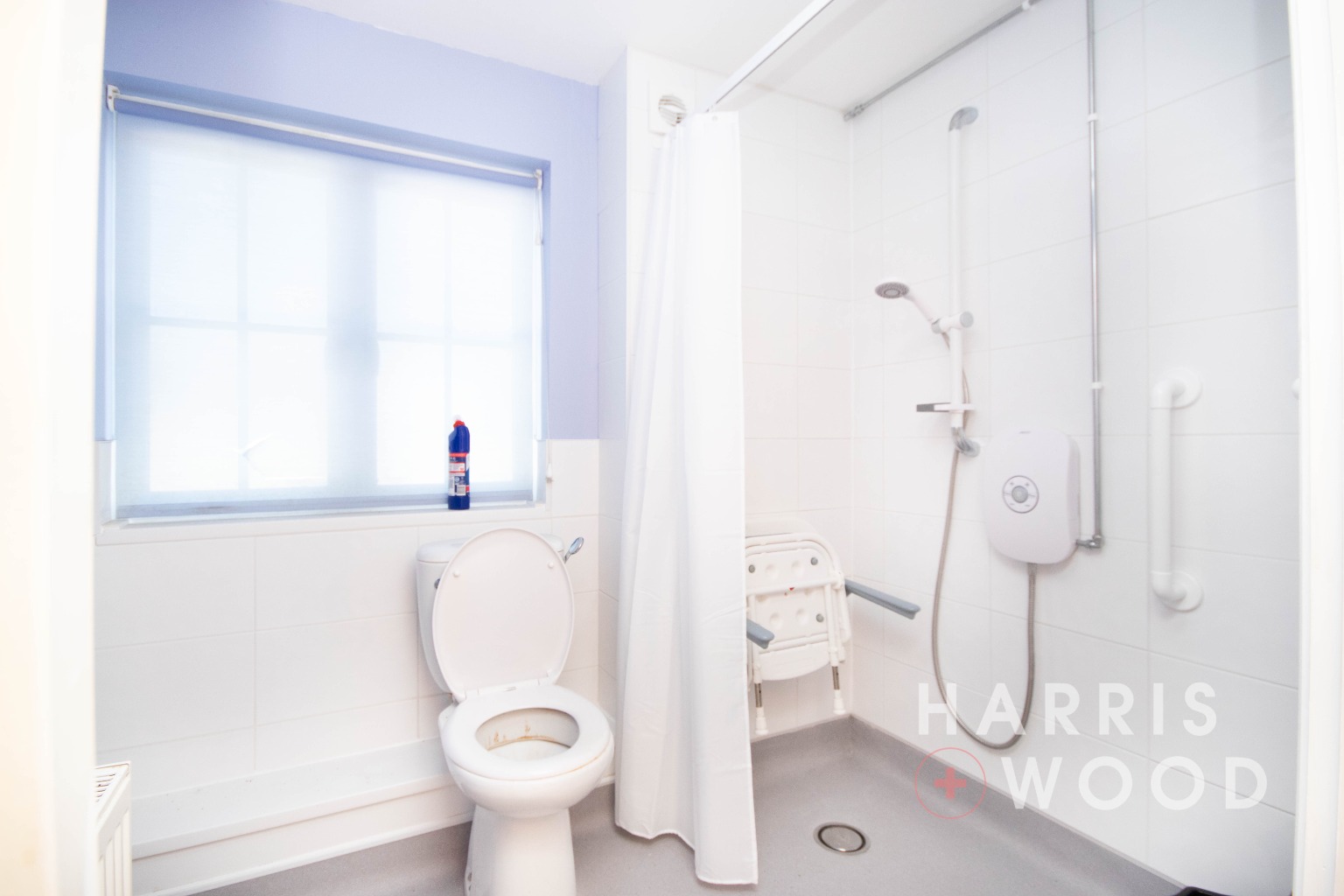 Double glazed window, low level WC, wash hand basin, bath with shower over