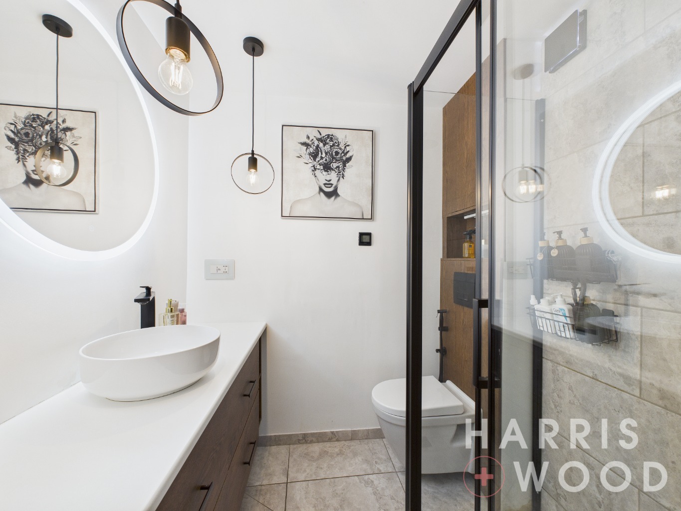 Low level WC, wash hand basin, walk in shower, underfloor heating, storage