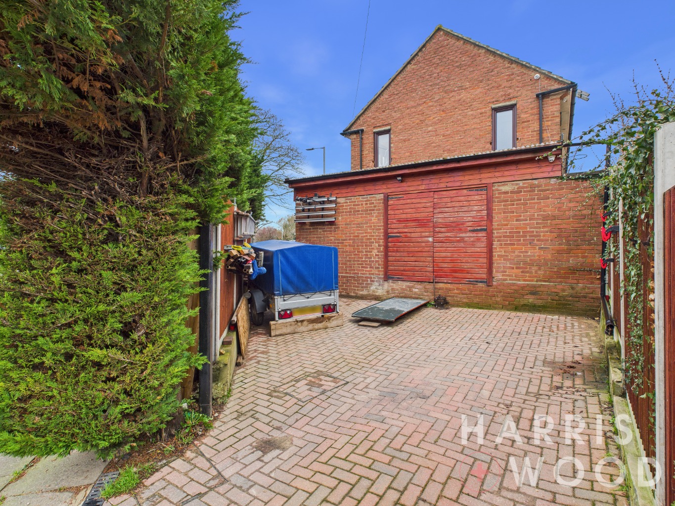 One of the standout features is the generous landscaped rear garden, providing a private oasis for outdoor entertaining. It includes a substantial outbuilding, currently a versatile workshop, offering potential for a home office, gym, or studio. Driveway parking adds practicality.