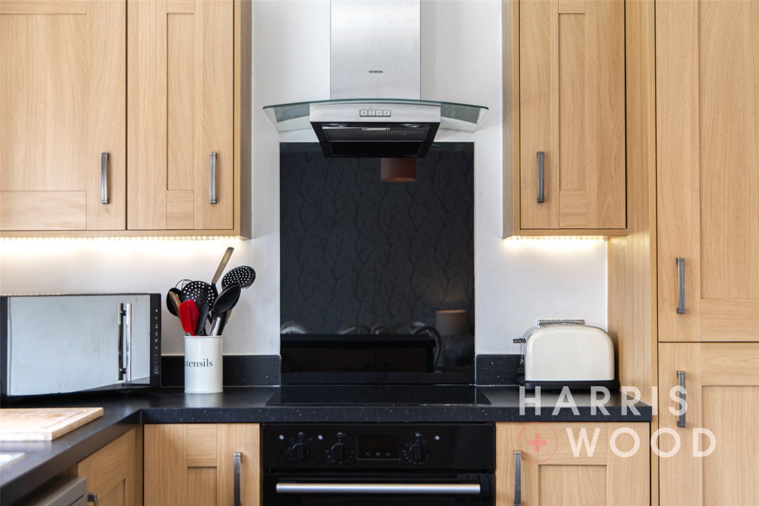 Double glazed window to rear, wall and base level units, sink and drainer with mixer tap over, oven and hob, extractor fan, worktops, integrated appliances, spotlights to ceiling