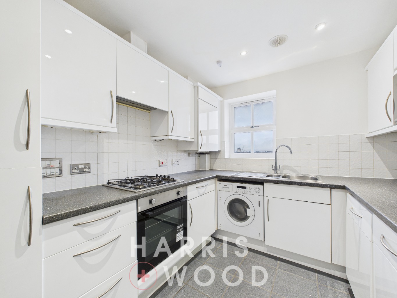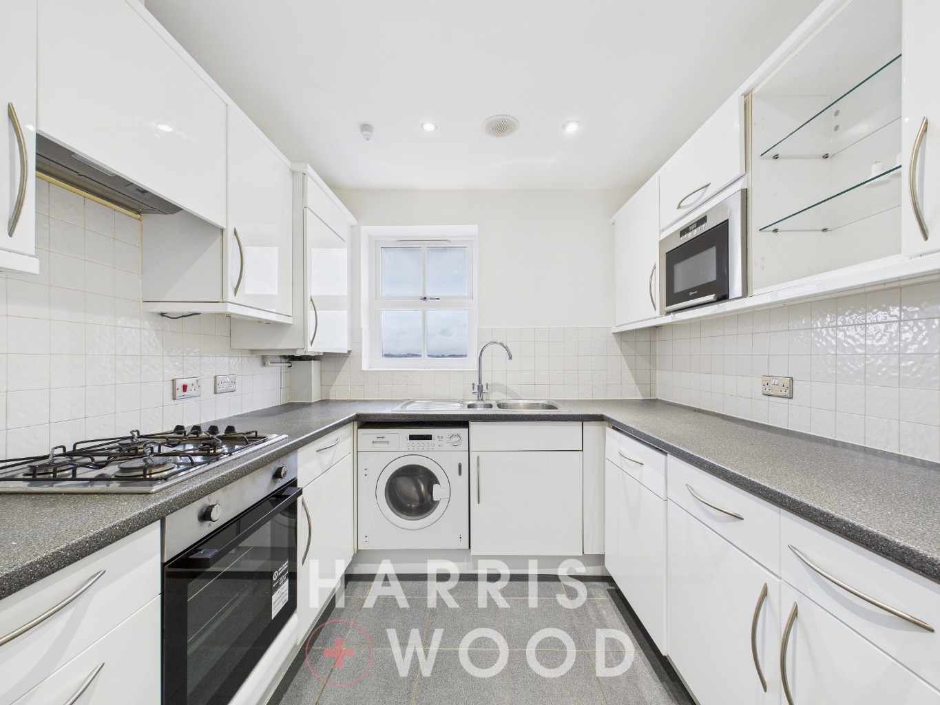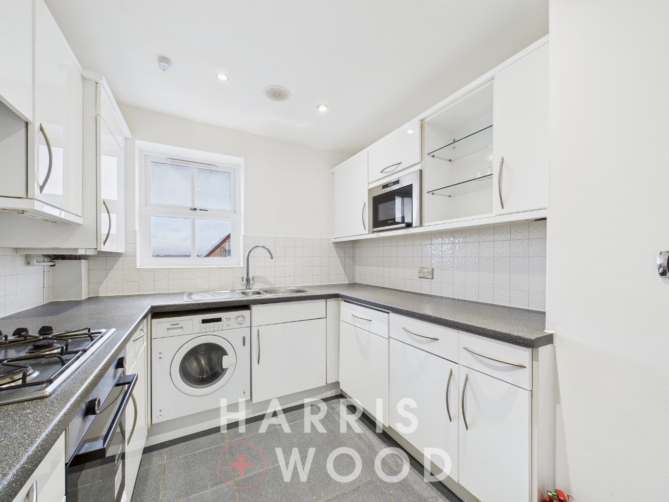 Upon entering, you are greeted by a welcoming entrance hall that leads to all principal rooms. The apartment features a bright and airy reception room, providing ample space for both living and dining areas, perfect for entertaining guests or enjoying quiet evenings at home. The modern kitchen is well-appointed with a range of wall and base units, offering plenty of storage and worktop space.