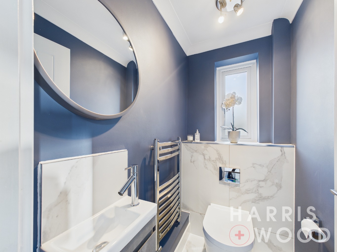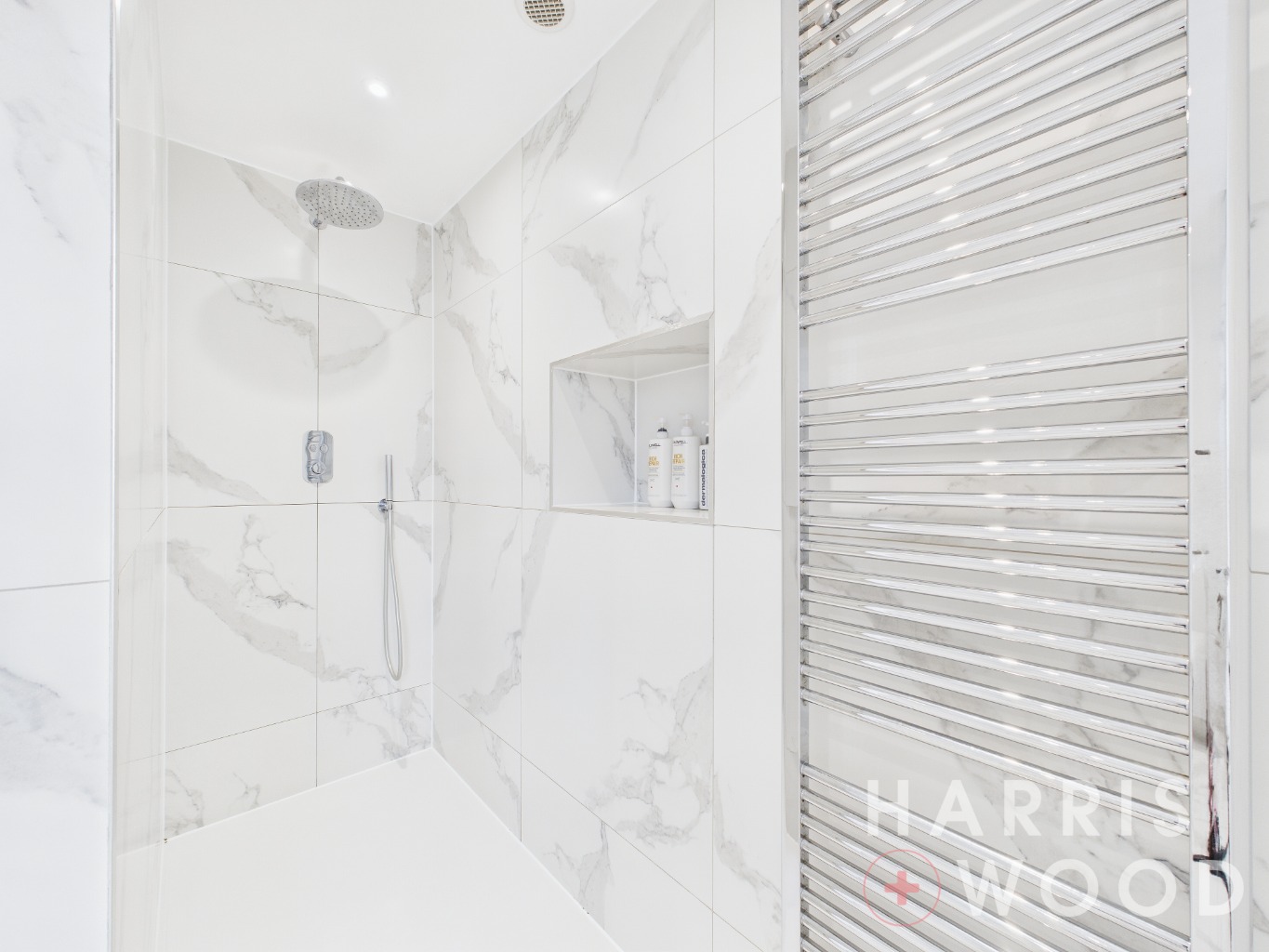 Concealed WC, Jack and Jill sinks, shower, radiator, chrome heated towel rail