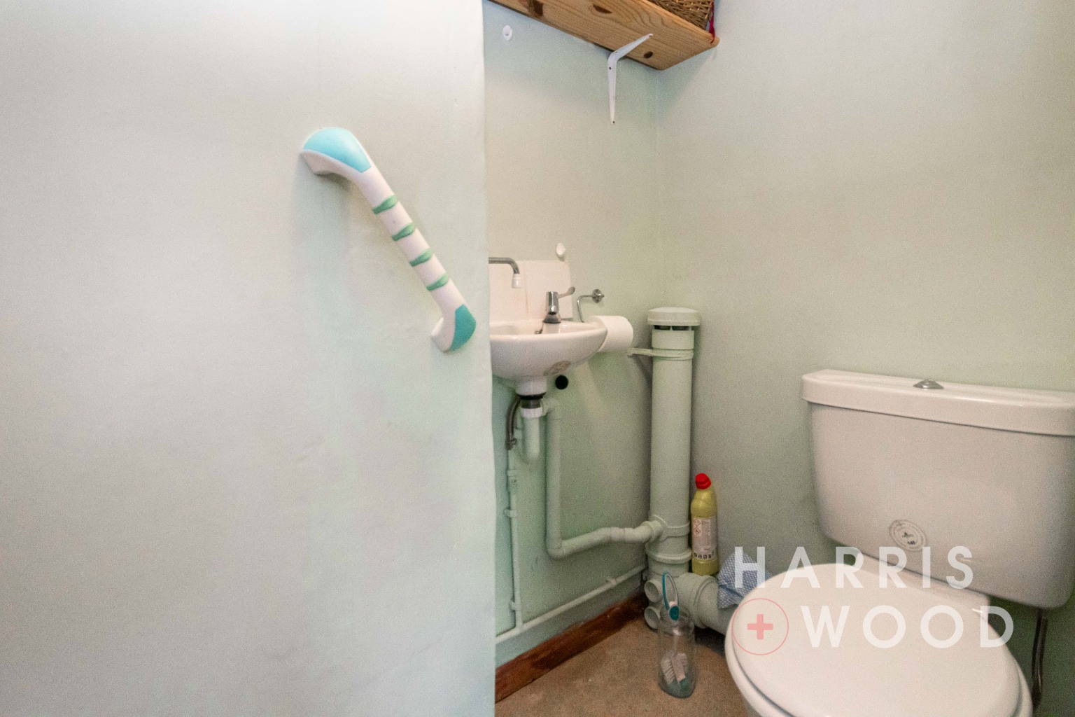 Double glazed window to rear, low level WC, wash hand basin, bath with shower over, radiator