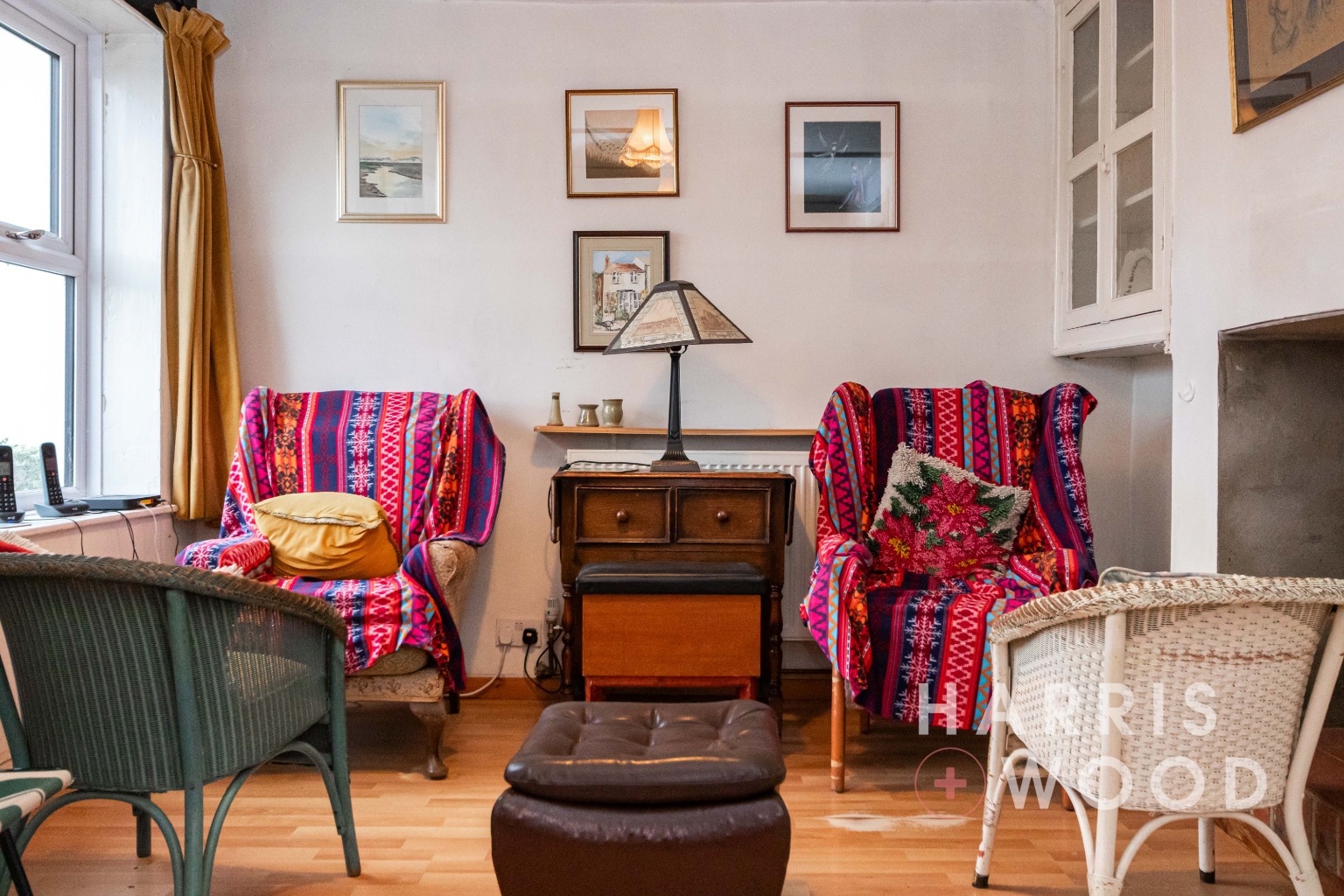 Two double glazed windows to front, feature fireplace, radiator, doors leading off