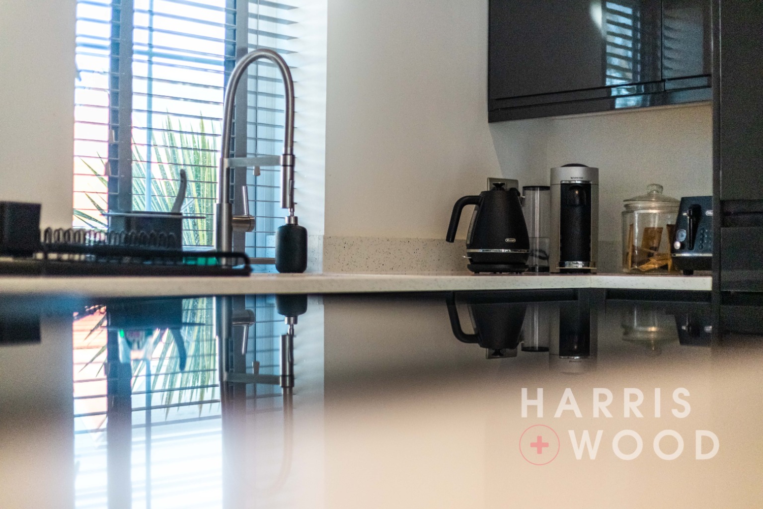 Quartz worktops, double glazed door to rear, stainless steel sink, space for appliances