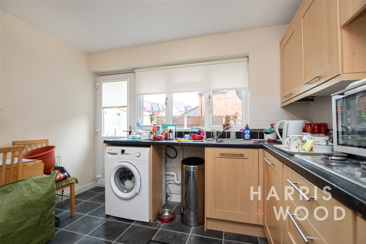 Double glazed window, double glazed door, wall and base level units, inset sink and drainer with mixer tap over, oven and hob, extractor fan, worktops, tiled splashbacks, space for appliances, radiator